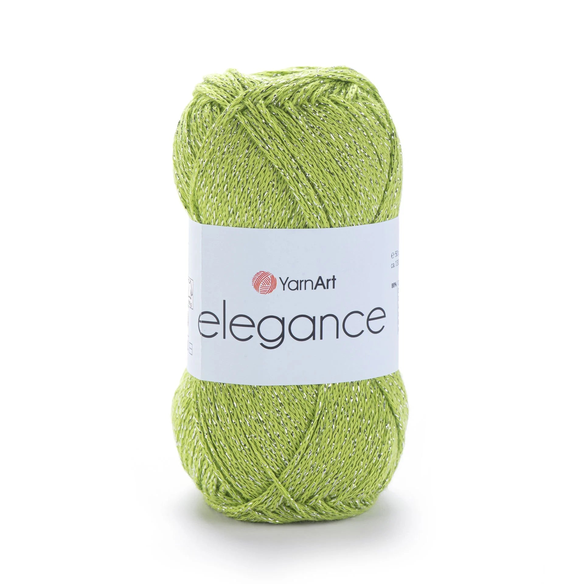 YarnArt Elegance is a lightweight, fine yarn combining soft cotton with a subtle metallic shimmer—ideal for creating elegant summer pieces like blouses, cardigans, hats, bags, belts, and shawls. Its smooth texture ensures snag-free knitting and crocheting, making it perfect for delicate garments and chic accessories