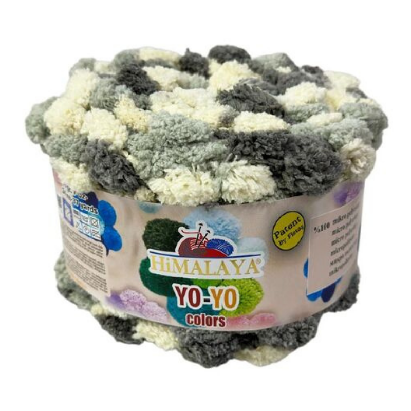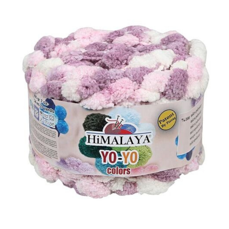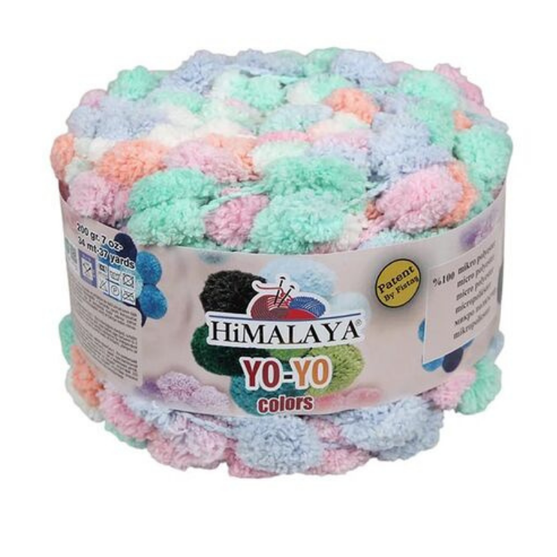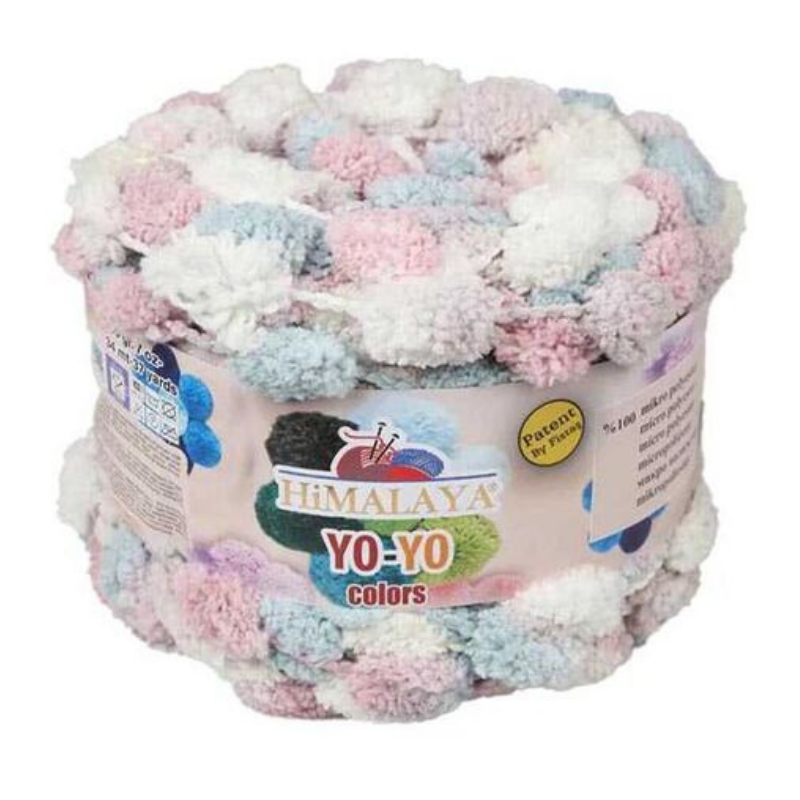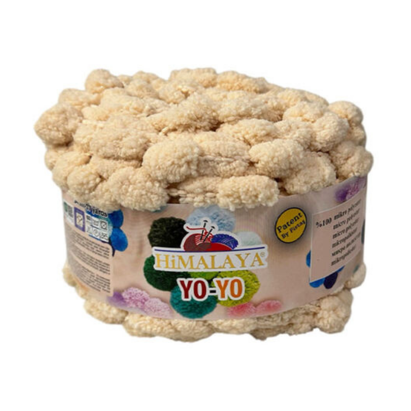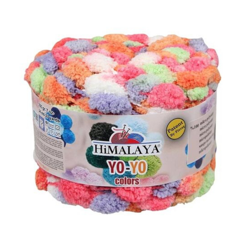 Himalaya Yo-Yo is a soft, fluffy, pon-pon yarn . Each 200g skein is 34m (37yd) and works best with 3.5mm (US4) needles, offering easy handling and smooth knitting.