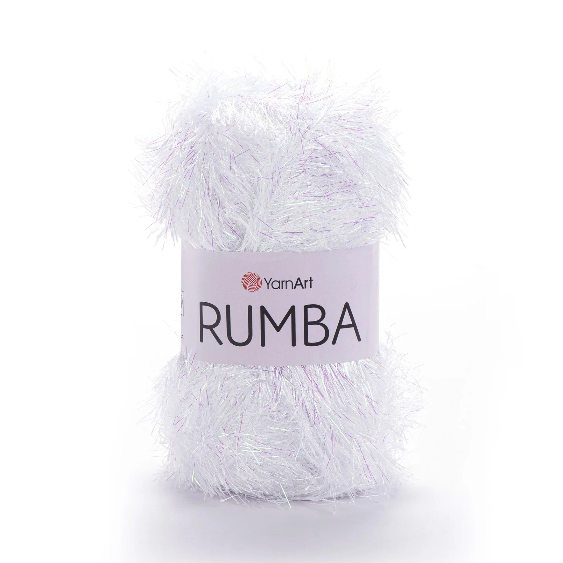 YarnArt Rumba eyelash yarn combines 80% polyester with 20% metallic fibers to create a glamorous, sparkling texture. Its long, silky eyelash fibers add elegant shine and depth to your knitting and crochet projects. Works beautifully on its own or paired with other yarns to create unique textures. Ideal for eye-catching scarves, shawls, accessories, and decorative accents in home décor.