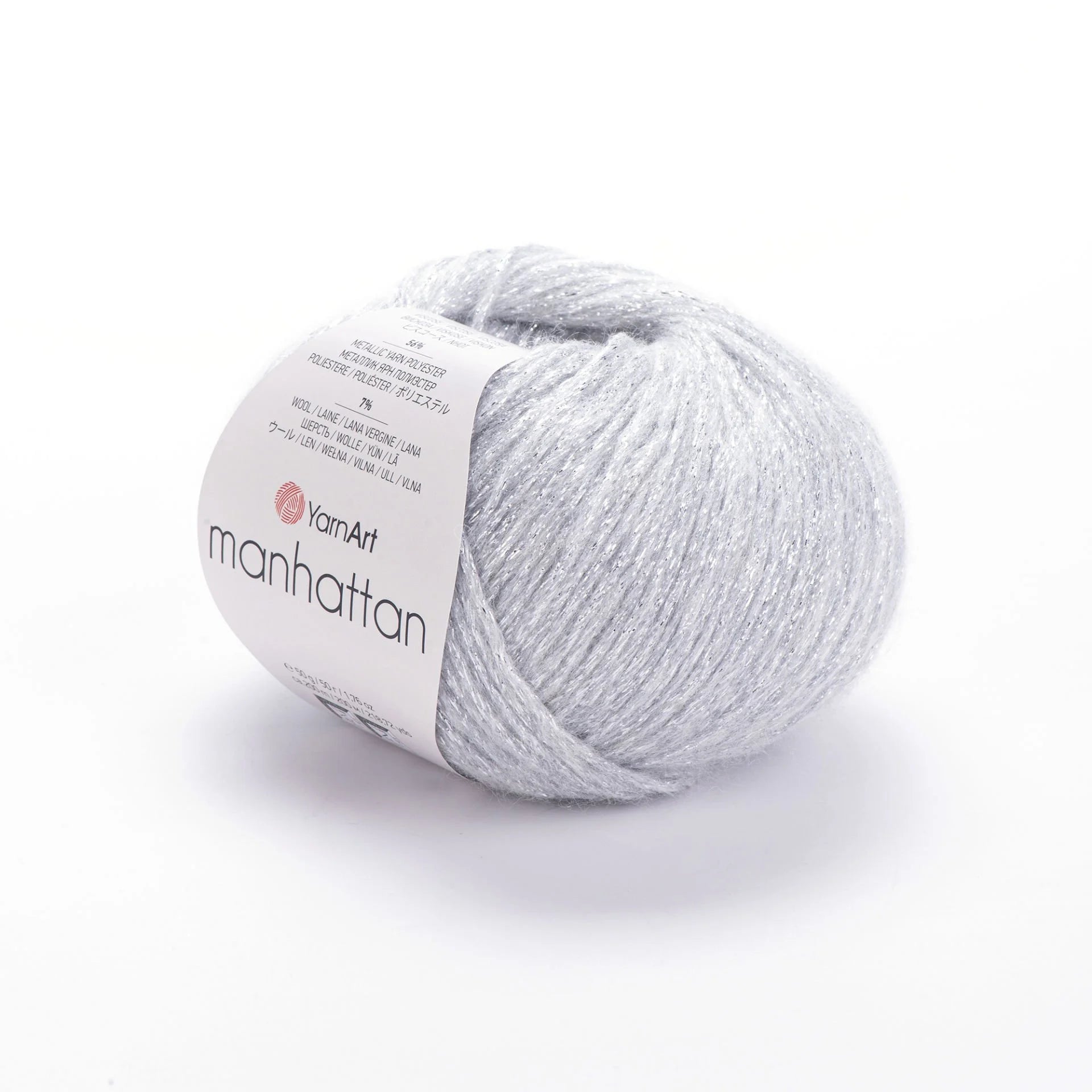 YarnArt Manhattan is a soft, glittery sport-weight yarn ideal for knitting and crochet. Perfect for elegant winter projects such as cardigans, shawls, hats, and accessories.
