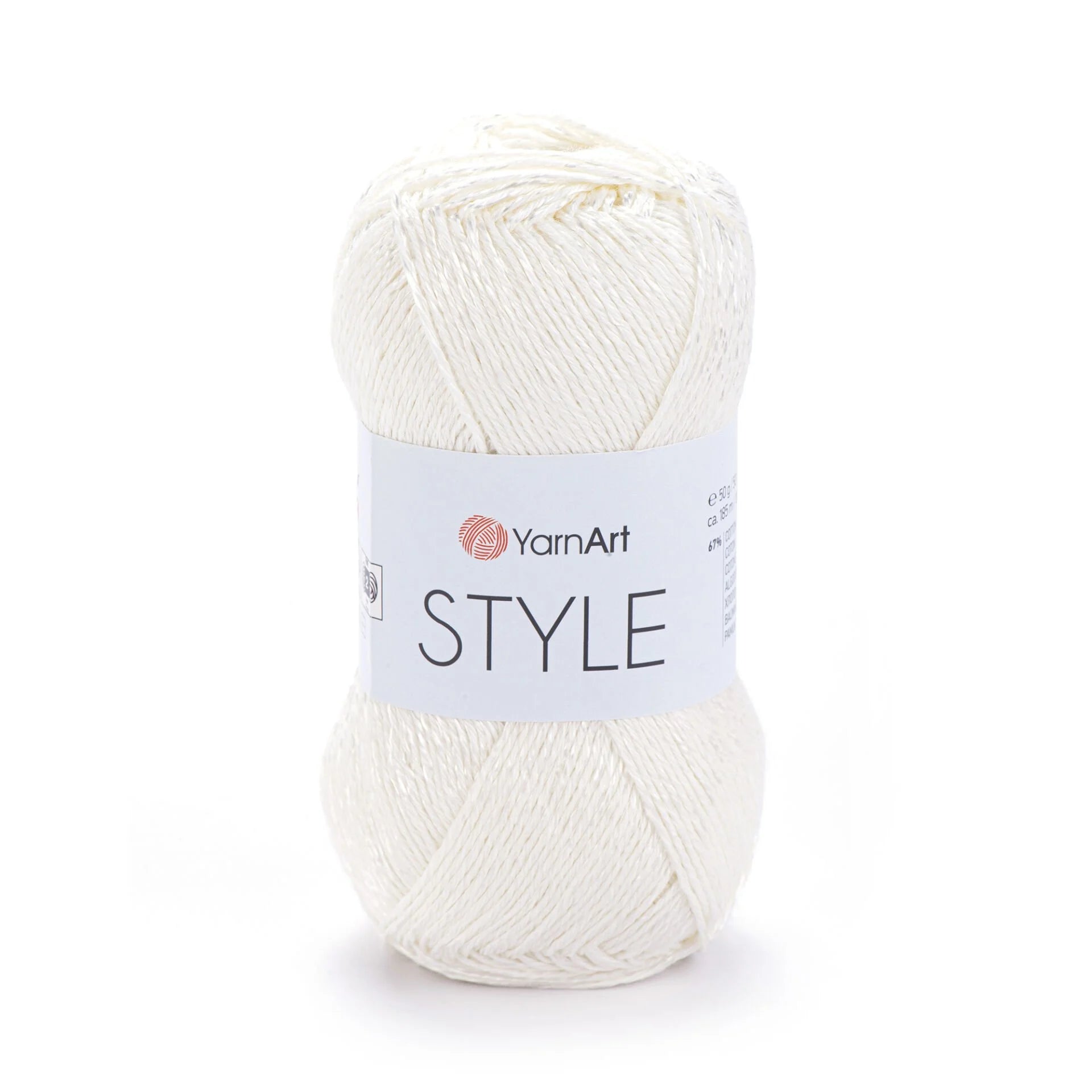 YarnArt Style is a lightweight sport-fine yarn blending cotton and viscose for a soft drape and subtle sheen. Each 50 g skein contains 185 m of breathable, easy-care yarn, perfect for creating elegant summer garments like lace shawls, lightweight tops, stylish blouses, and delicate accessories. Its smooth texture and balanced twist ensure even stitches and excellent drape when worked with 3 mm needles or hooks. The cotton-viscose blend also adds a shiny, luxurious finish—ideal for sophisticated, wearable designs.