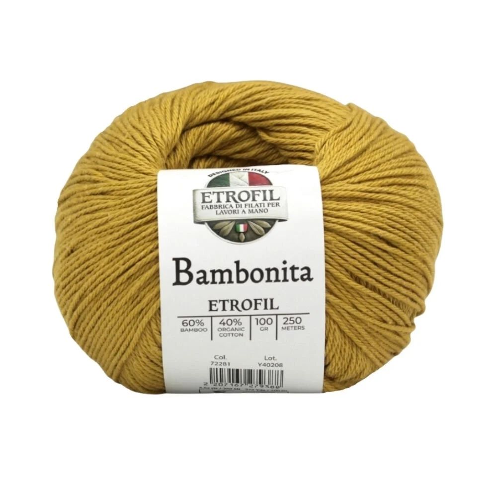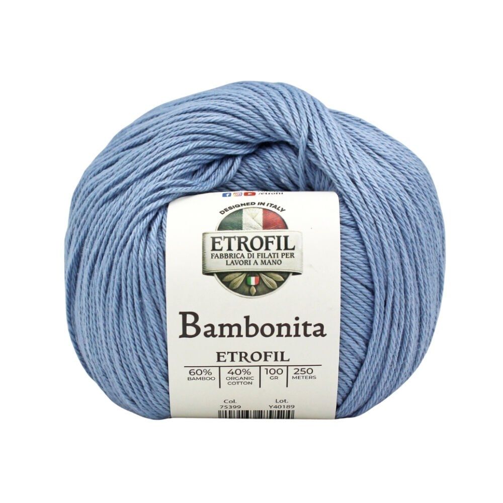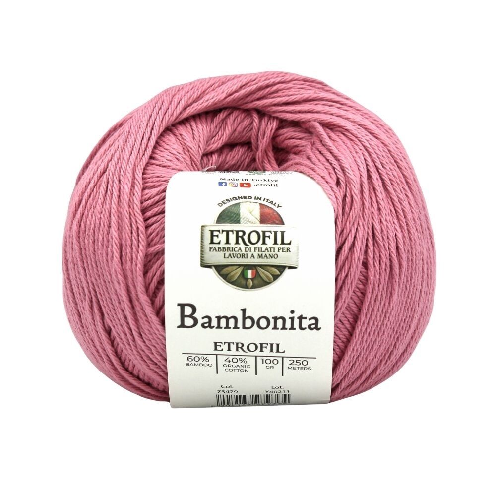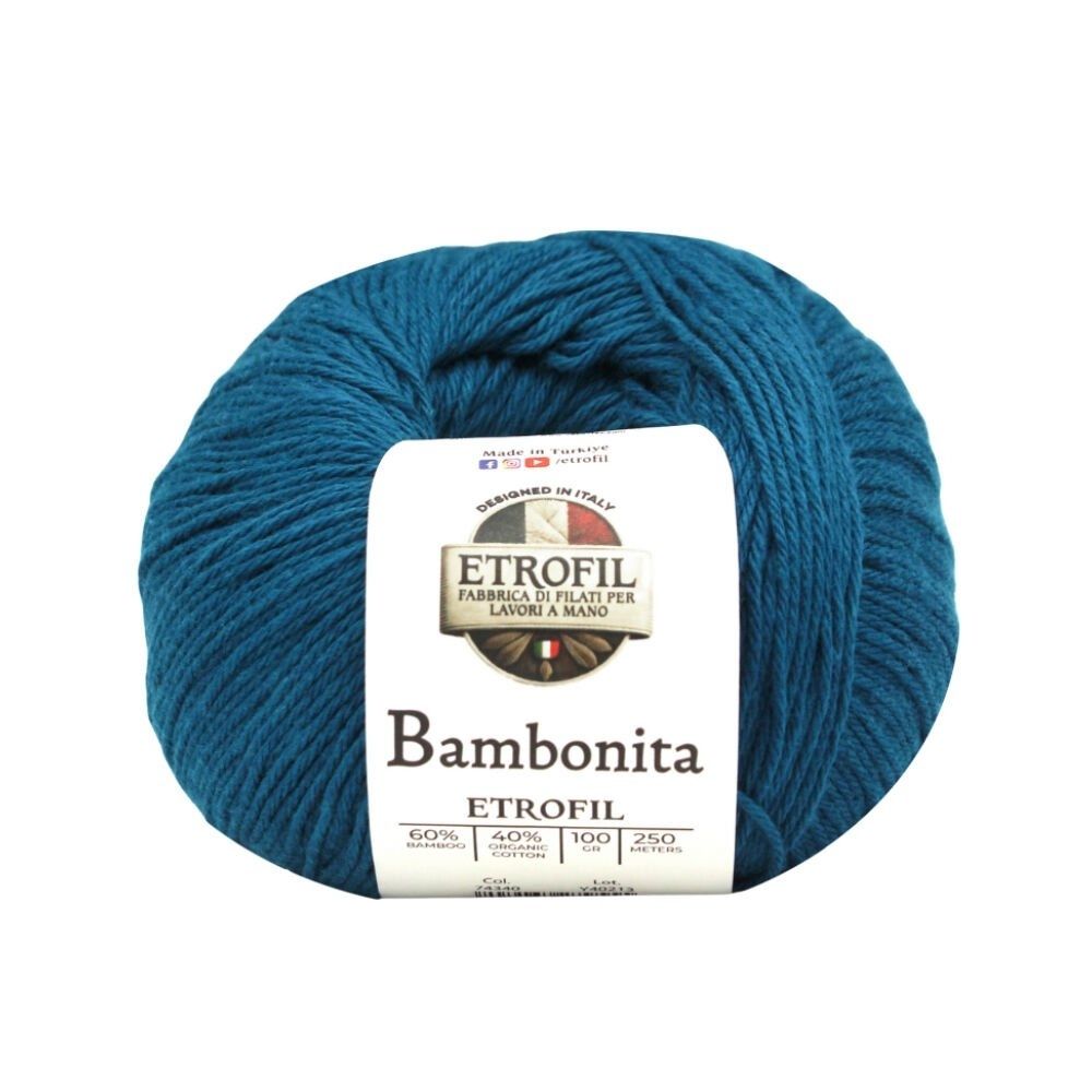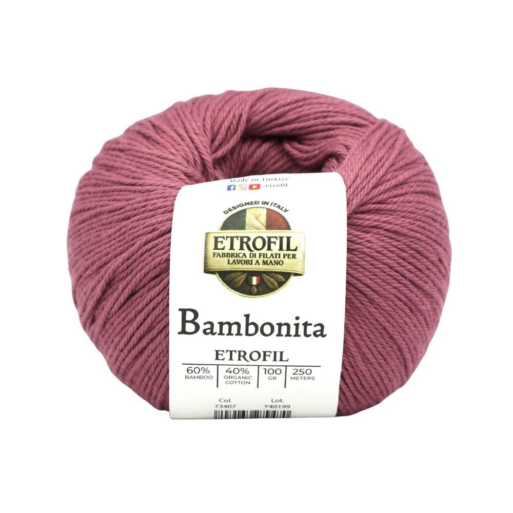 Etrofil Bambonita es un hilo ligero, transpirable y suave para la piel, elaborado con una mezcla natural de bambú y algodón orgánico. El bambú aporta brillo sedoso y frescura, mientras que el algodón ofrece comodidad y transpirabilidad.
