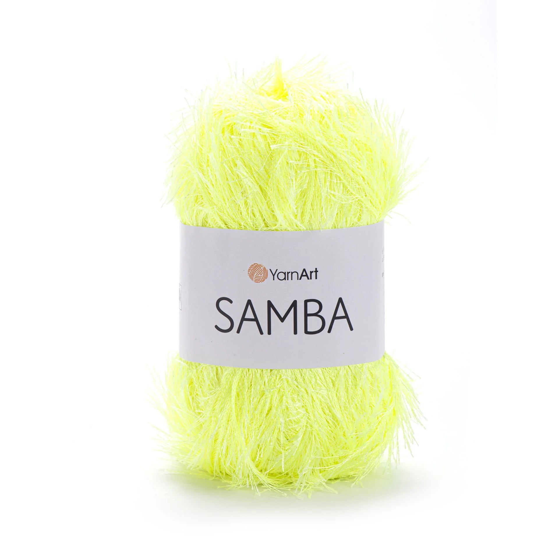 YarnArt Samba is a playful eyelash-style yarn made from 100% polyester. Its long, fluffy fibers create a faux fur texture, adding volume, softness, and eye-catching flair to every project. Easy to work with using 5.5 mm tools, it’s perfect for scarves, trims, hats, jackets, home décor accents, and amigurumi doll hair. Ideal for crafters who want quick, textured results with a fun, luxurious feel.