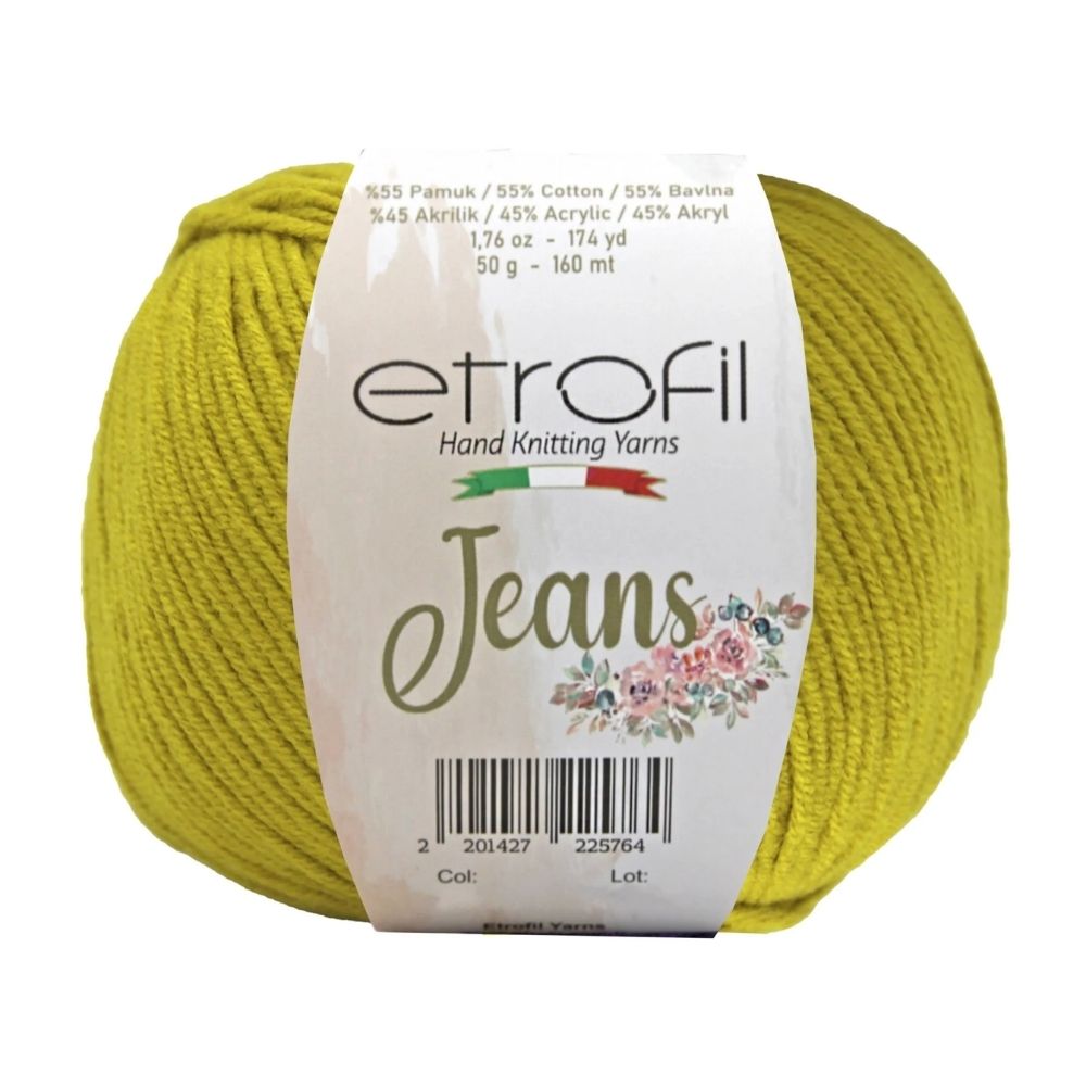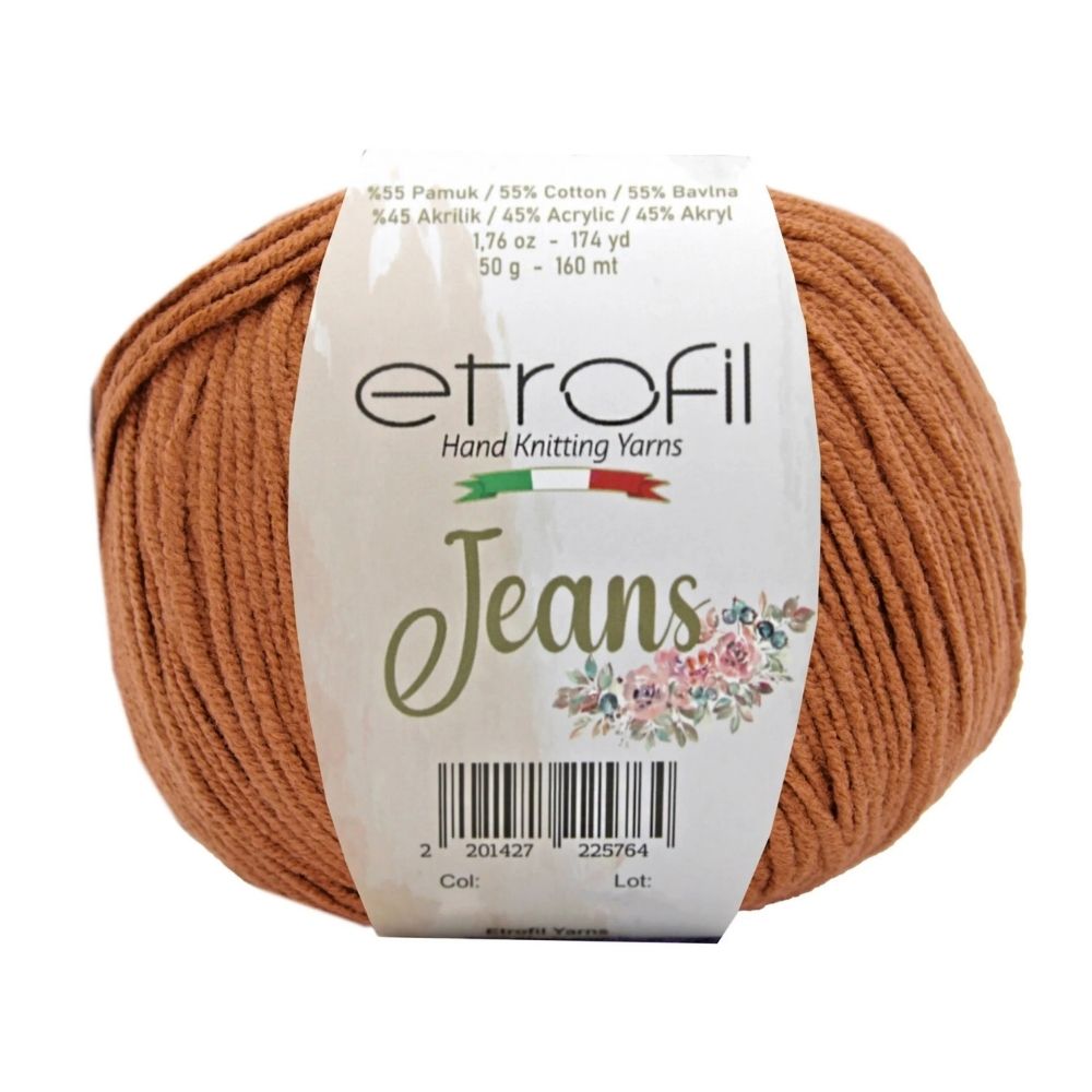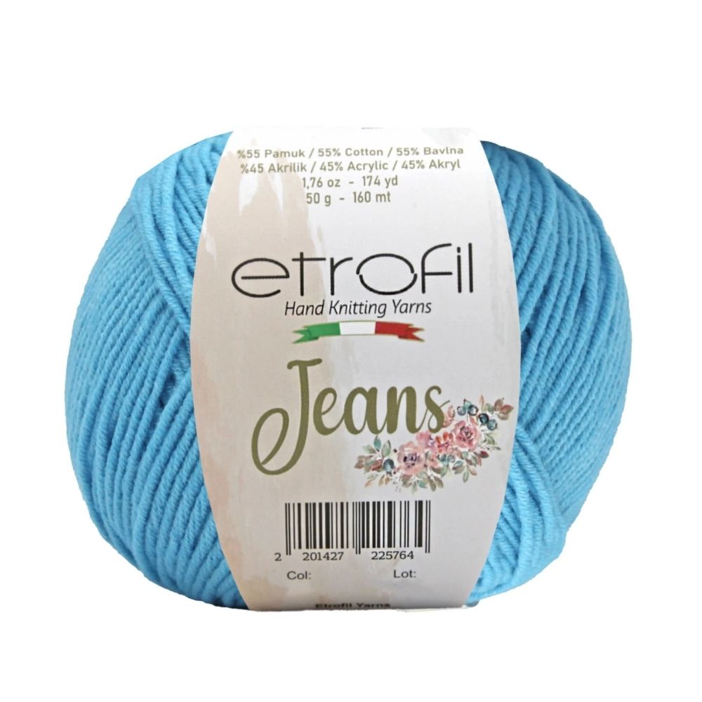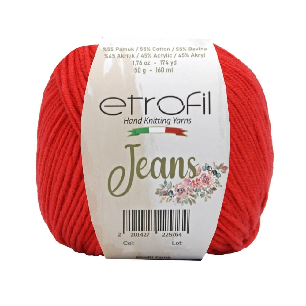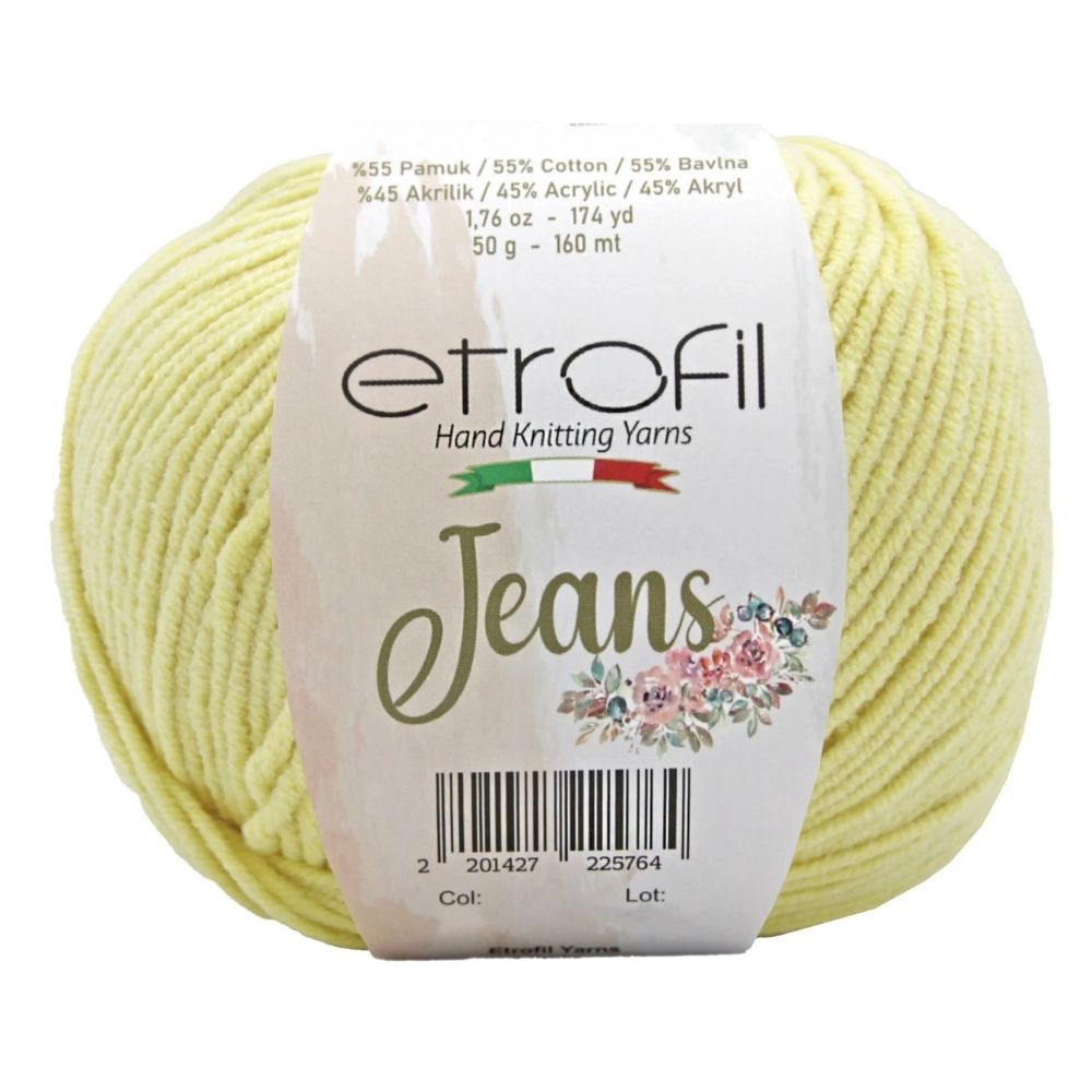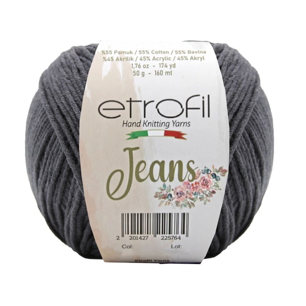 Etrofil Jeans allie la douceur respirante du coton à l'élasticité résistante de l'acrylique, pour un résultat sportif : un fil fin, doux et peu sujet au boulochage. Avec 160 mètres par écheveau de 50 grammes, ce fil polyvalent est idéal pour de nombreux projets, tels que gilets, pulls, châles, décorations d'intérieur et surtout amigurumis, grâce à sa texture fine et à l'excellente définition de ses points. Disponible dans une large palette de couleurs tendance, Etrofil Jeans est un incontournable pour les tricoteurs et crocheteurs en quête de confort et de résultats éclatants de couleurs.