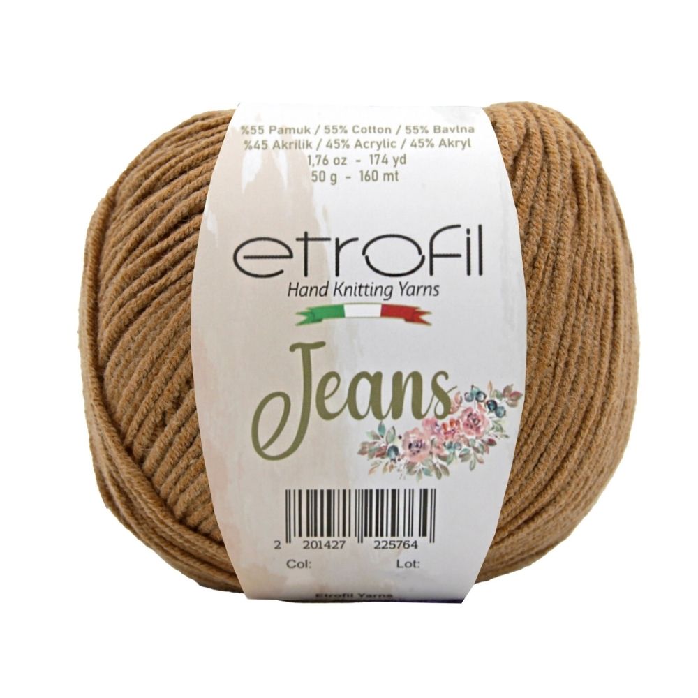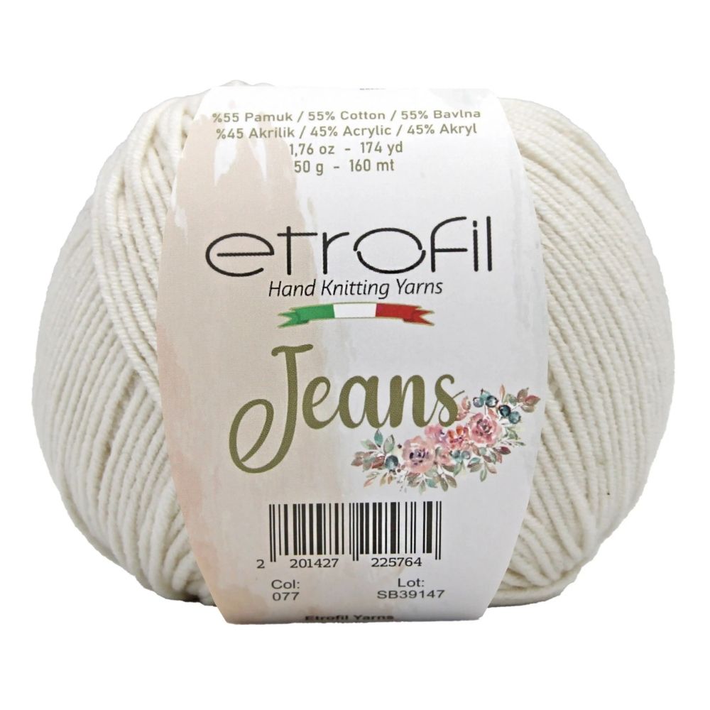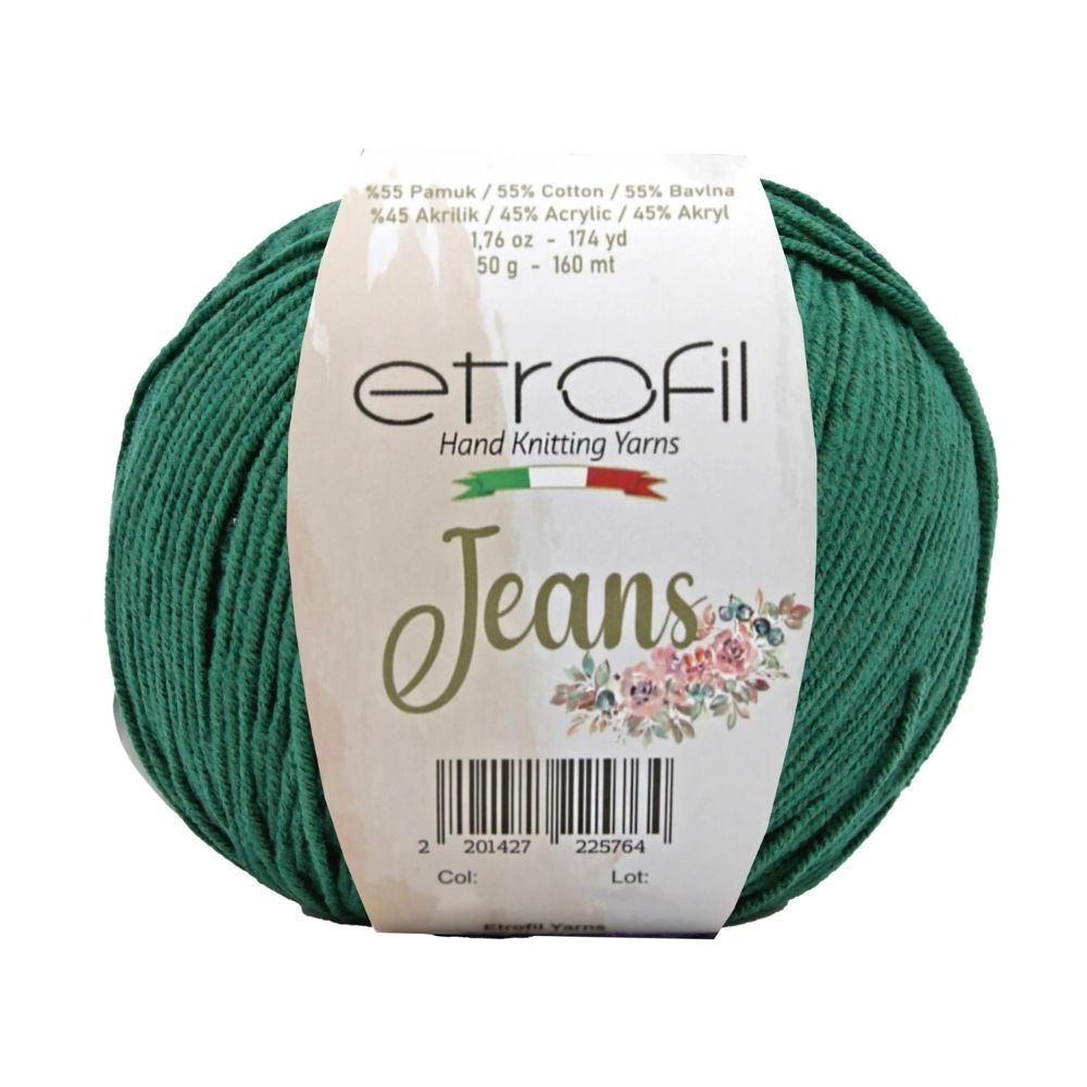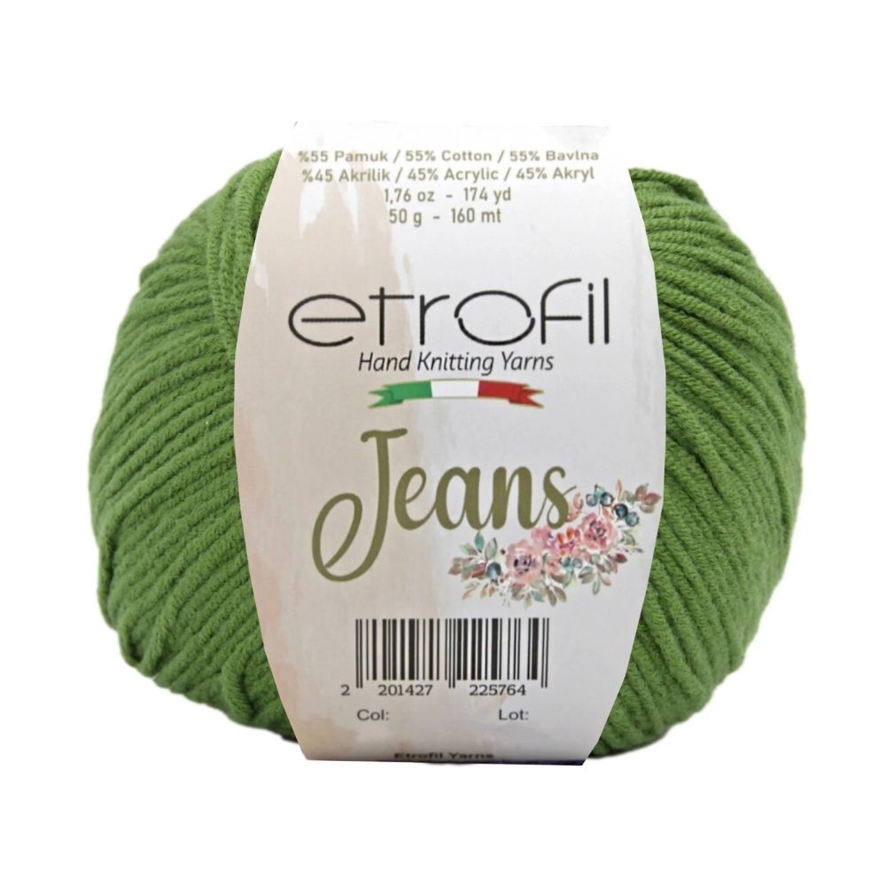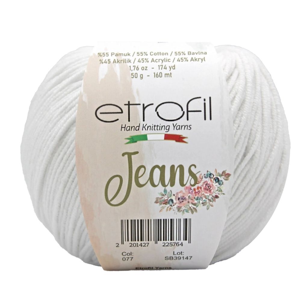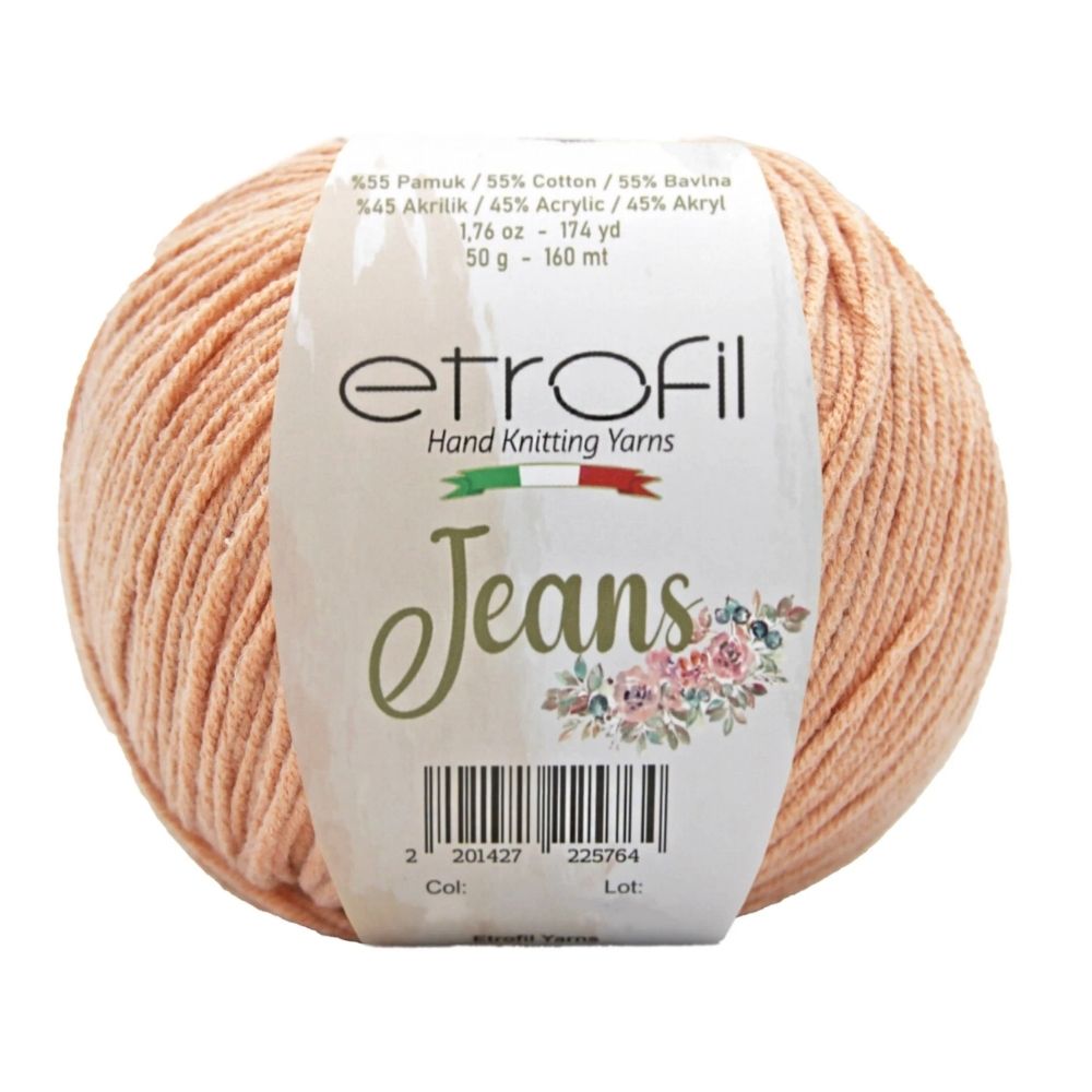 Etrofil Jeans allie la douceur respirante du coton à l'élasticité résistante de l'acrylique, pour un résultat sportif : un fil fin, doux et peu sujet au boulochage. Avec 160 mètres par écheveau de 50 grammes, ce fil polyvalent est idéal pour de nombreux projets, tels que gilets, pulls, châles, décorations d'intérieur et surtout amigurumis, grâce à sa texture fine et à l'excellente définition de ses points. Disponible dans une large palette de couleurs tendance, Etrofil Jeans est un incontournable pour les tricoteurs et crocheteurs en quête de confort et de résultats éclatants de couleurs.