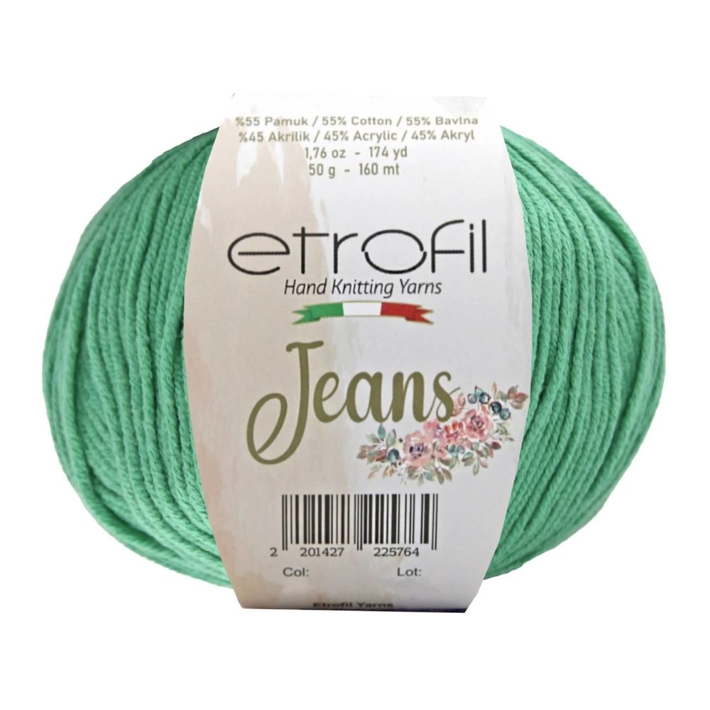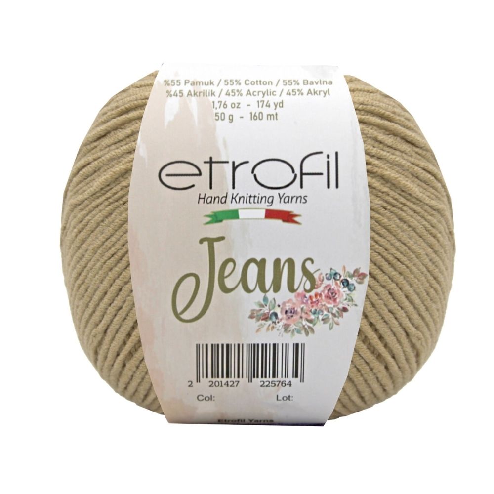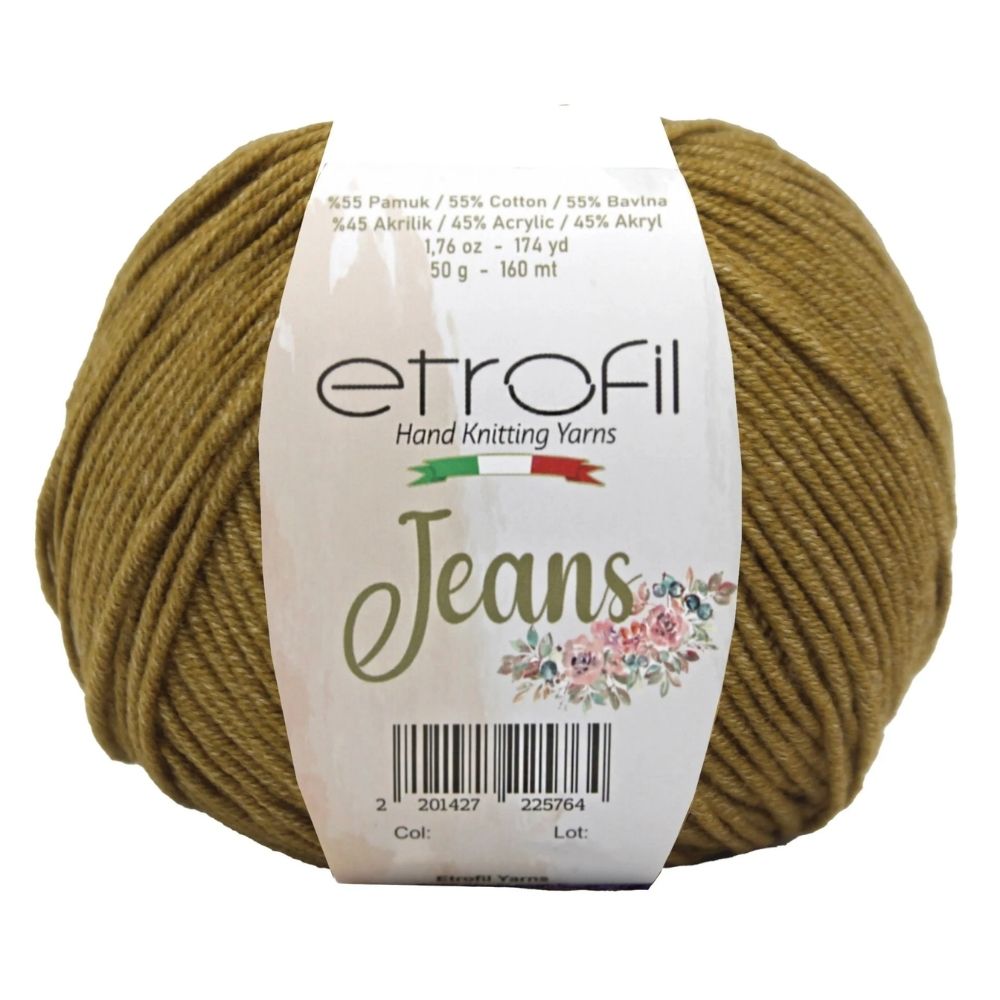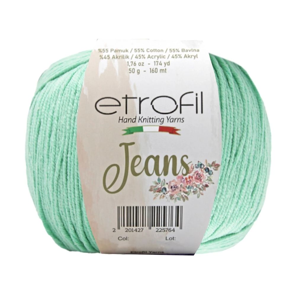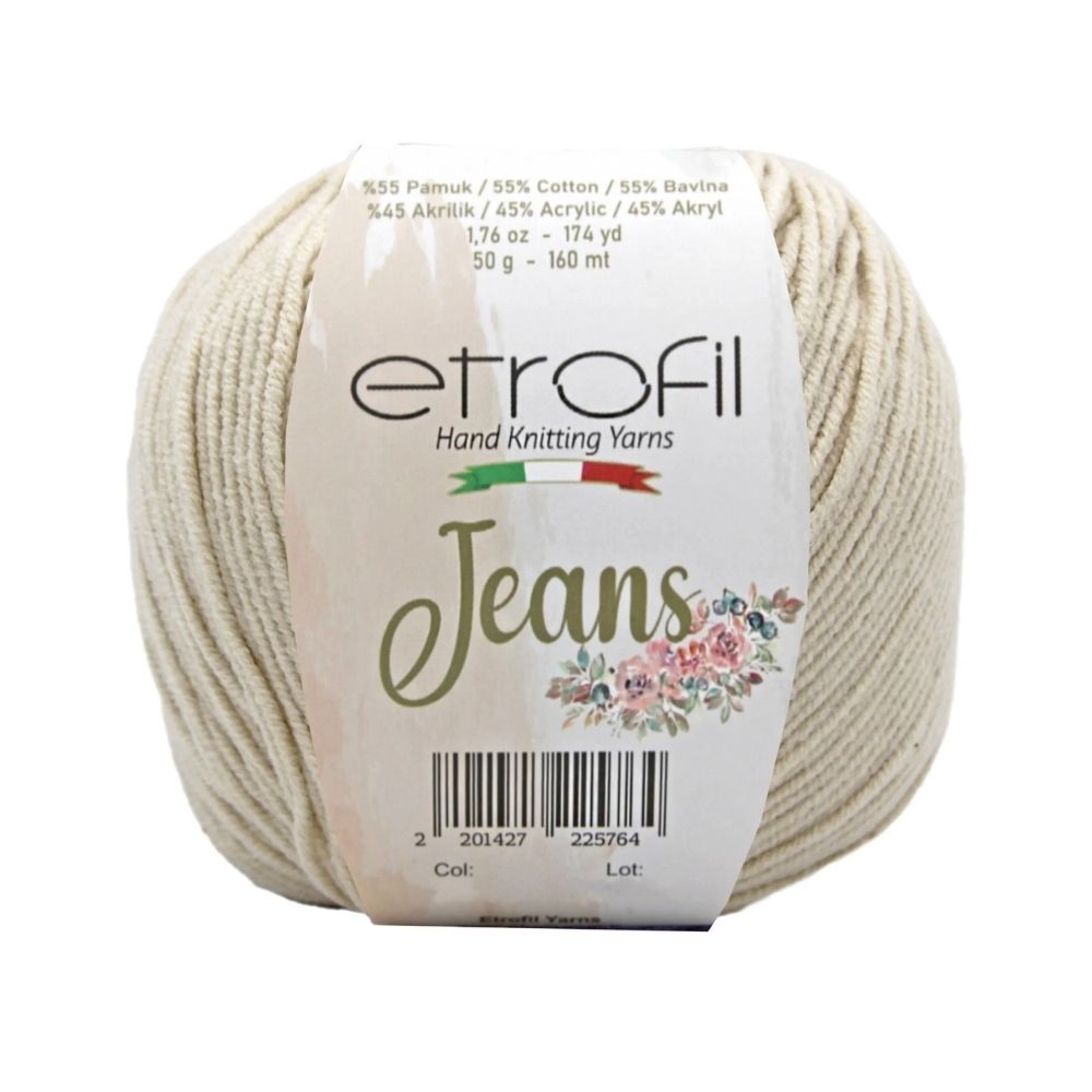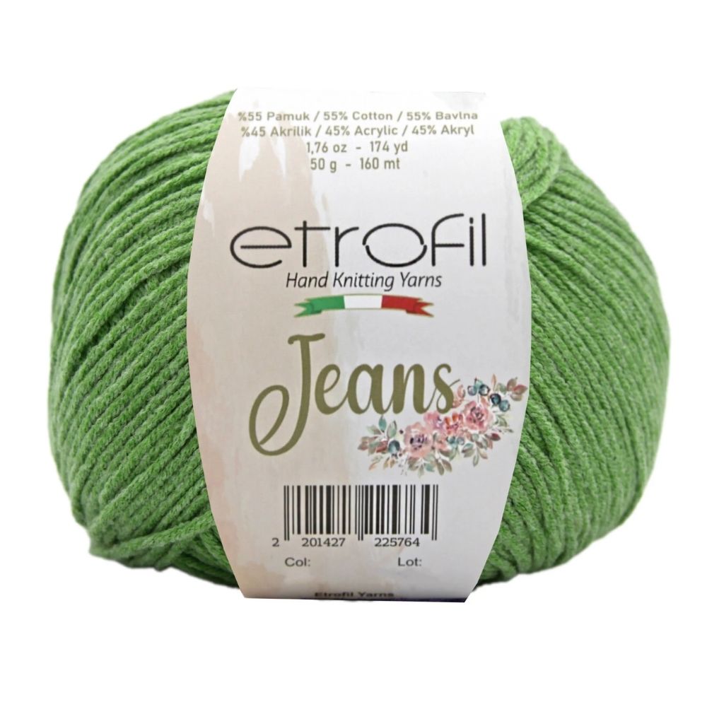 Etrofil Jeans allie la douceur respirante du coton à l'élasticité résistante de l'acrylique, pour un résultat sportif : un fil fin, doux et peu sujet au boulochage. Avec 160 mètres par écheveau de 50 grammes, ce fil polyvalent est idéal pour de nombreux projets, tels que gilets, pulls, châles, décorations d'intérieur et surtout amigurumis, grâce à sa texture fine et à l'excellente définition de ses points. Disponible dans une large palette de couleurs tendance, Etrofil Jeans est un incontournable pour les tricoteurs et crocheteurs en quête de confort et de résultats éclatants de couleurs.