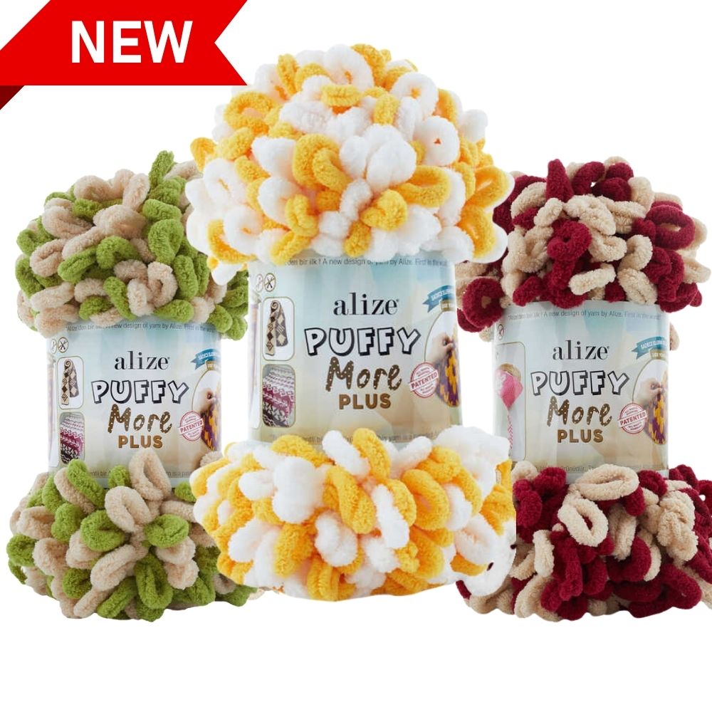 With Puffy More Plus, you can create various projects such as blankets, scarf and beanie sets, pillow covers, poufs, and toys. Its wide range of colors helps bring your dream designs to life. Moreover, being machine washable at 30°C makes maintenance easy.