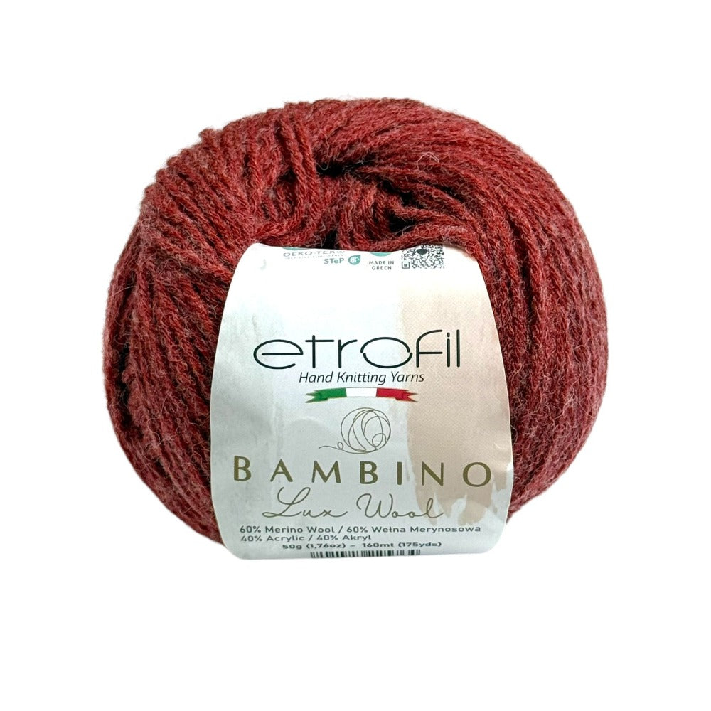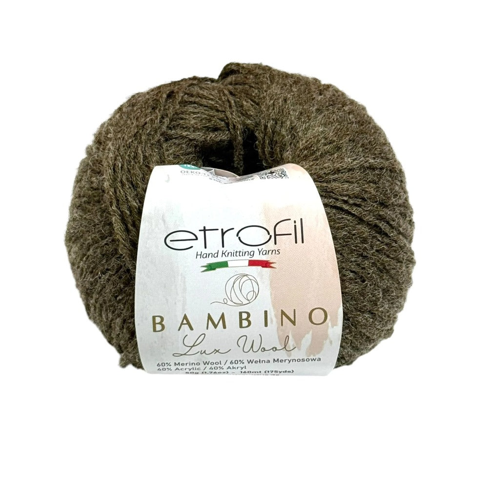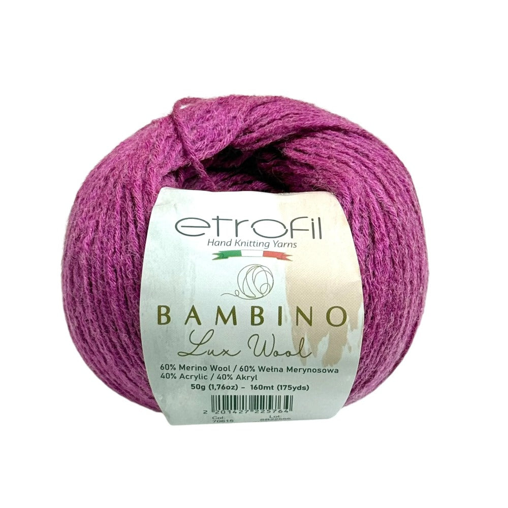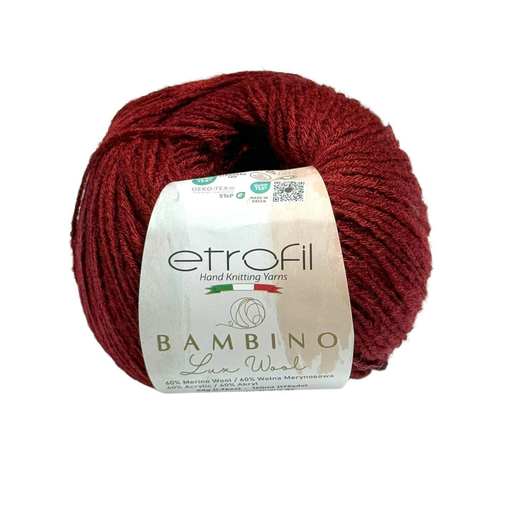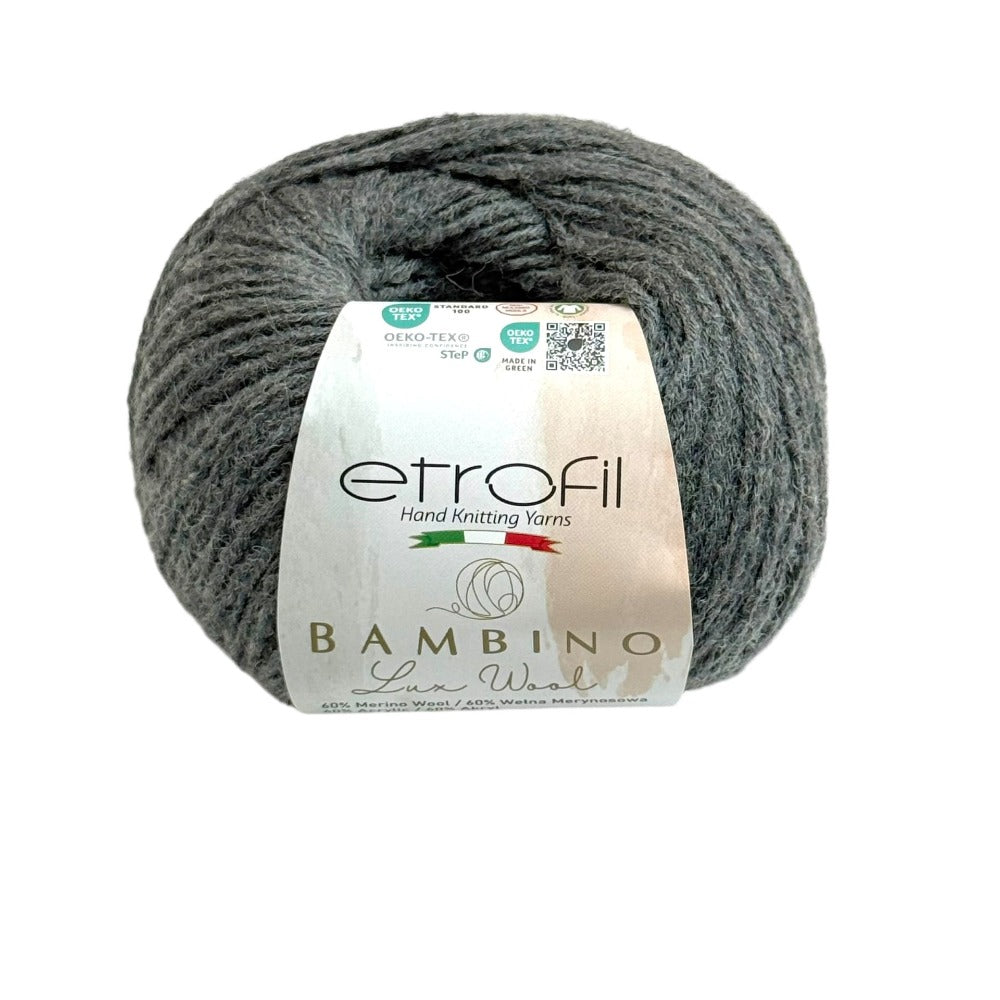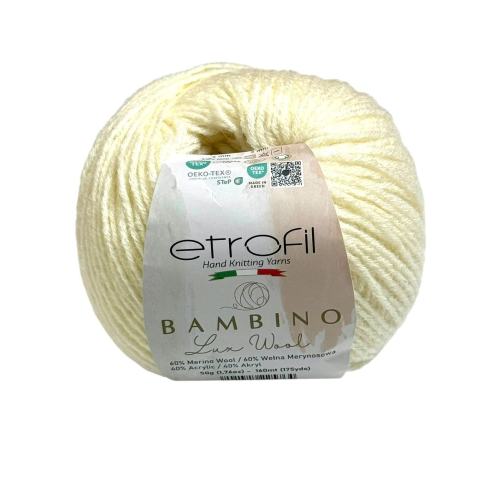 Etrofil Bambino Lux Wool est un fil raffiné, confectionné à partir de fibres de laine mérinos de première qualité, reconnues mondialement pour leur douceur, leur chaleur et leur confort exceptionnels. La laine mérinos soigneusement sélectionnée constitue le cœur de cette collection, offrant une texture lisse et douce au toucher.