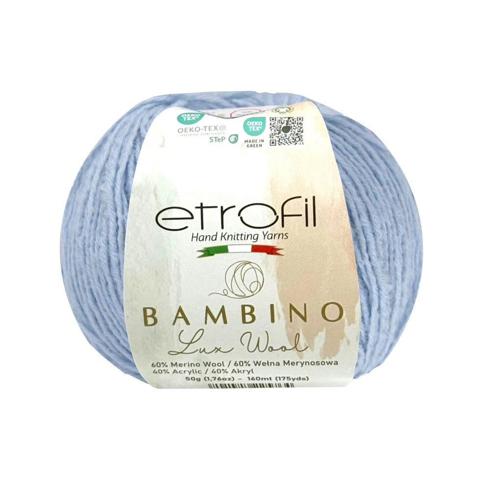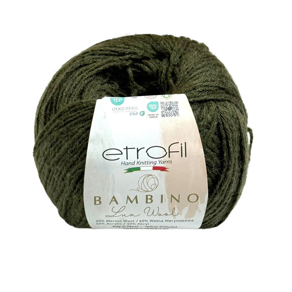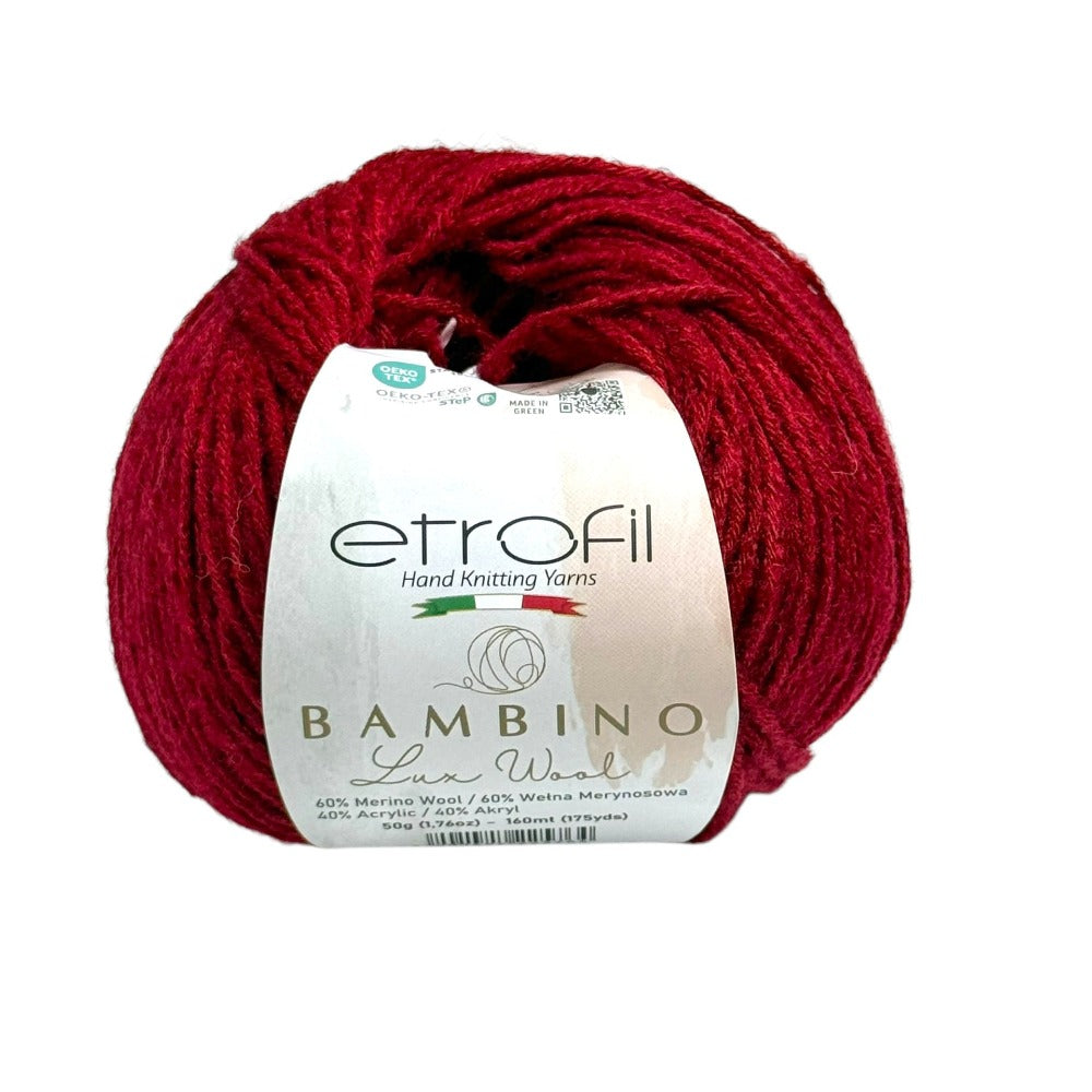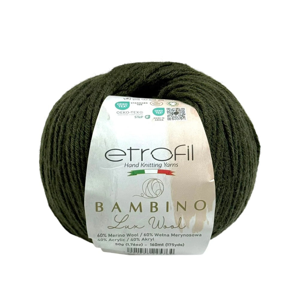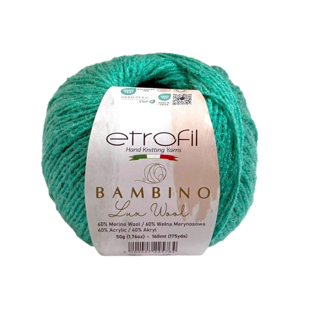 Etrofil Bambino Lux Wool est un fil raffiné, confectionné à partir de fibres de laine mérinos de première qualité, reconnues mondialement pour leur douceur, leur chaleur et leur confort exceptionnels. La laine mérinos soigneusement sélectionnée constitue le cœur de cette collection, offrant une texture lisse et douce au toucher.