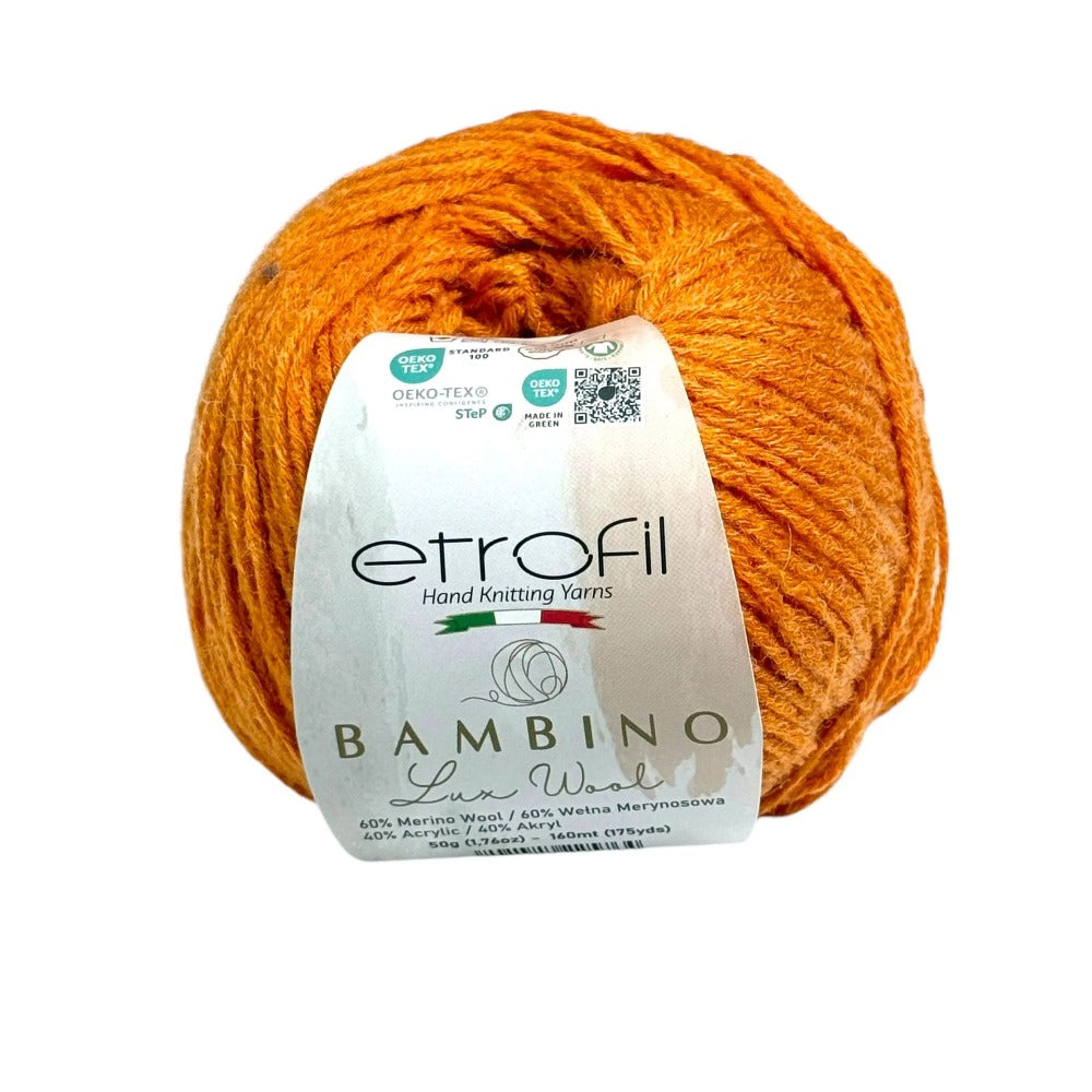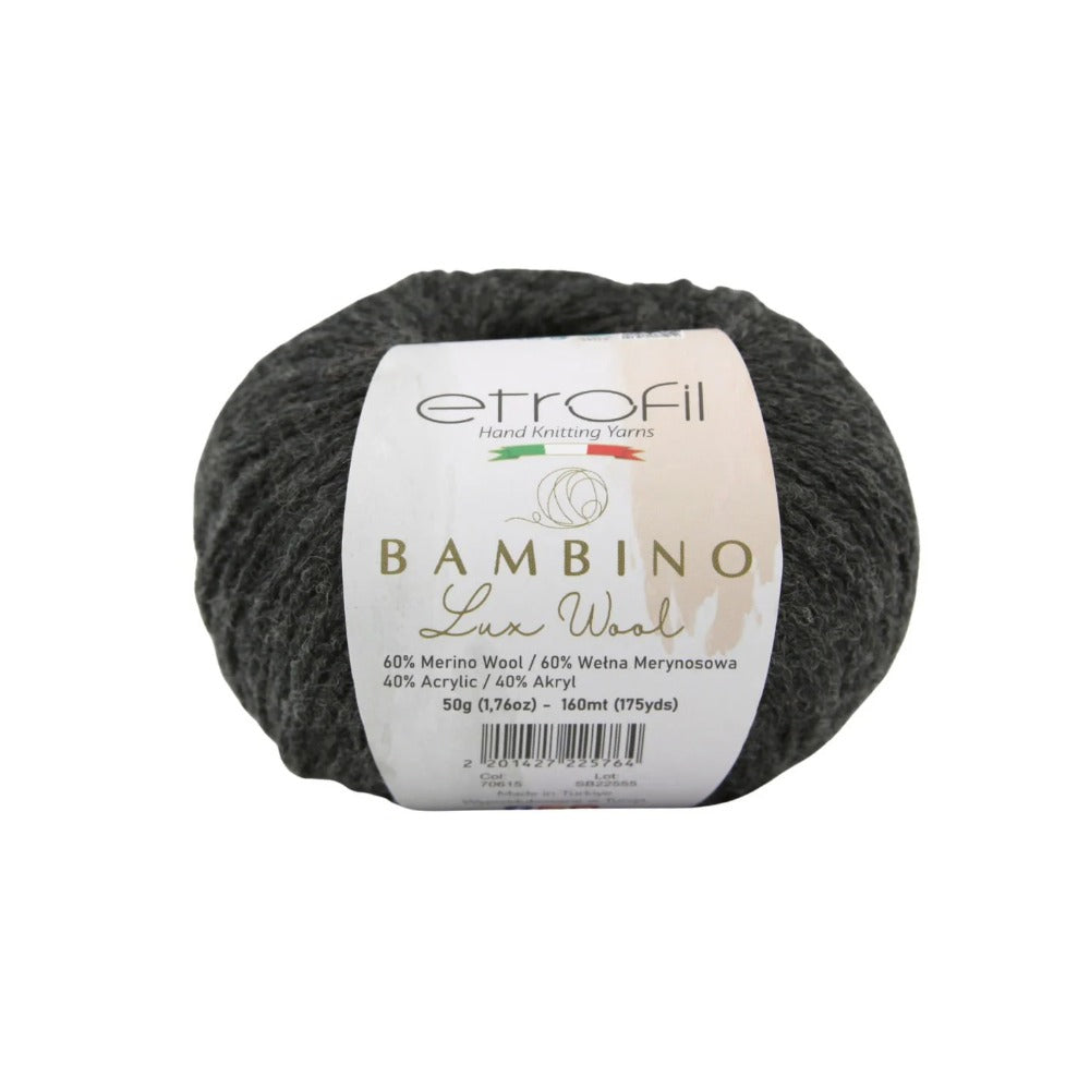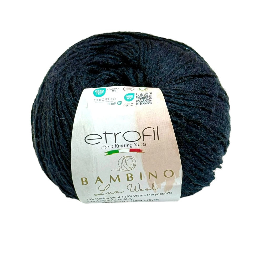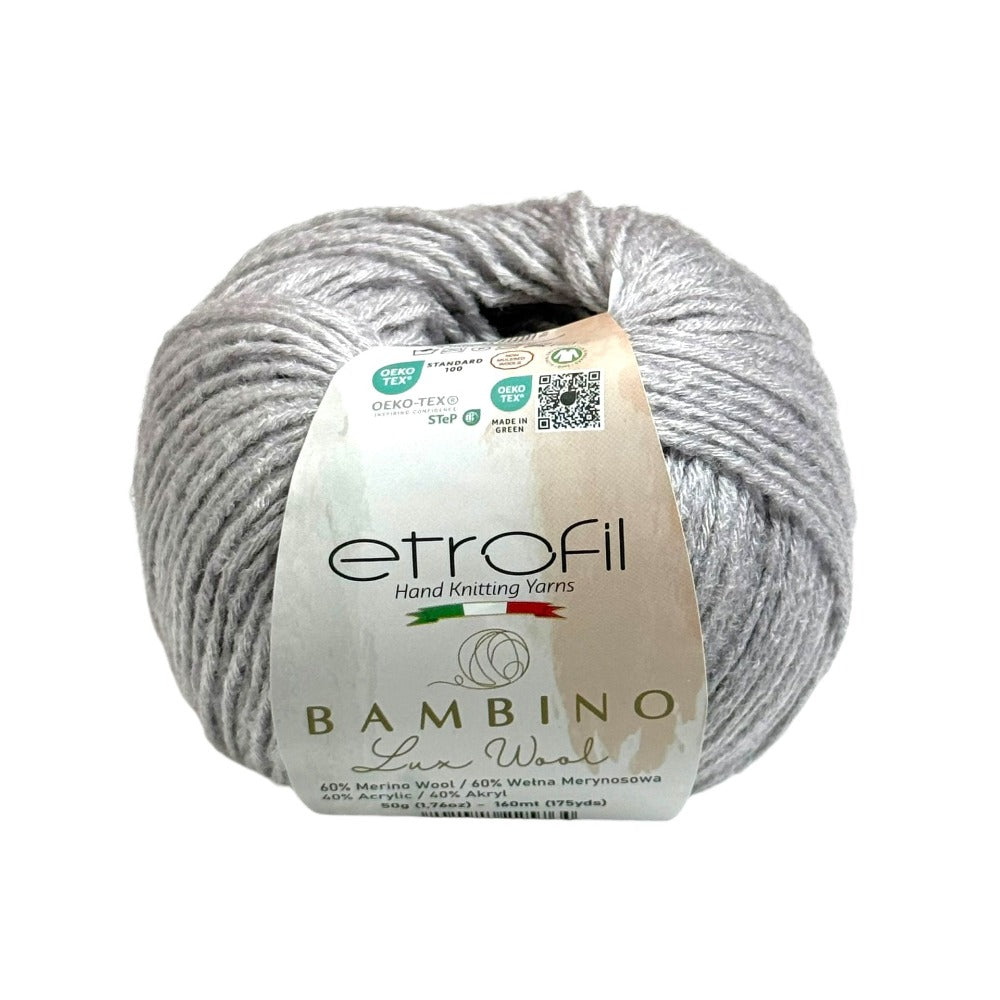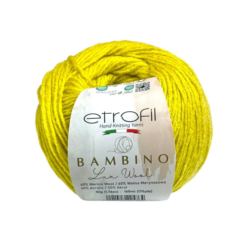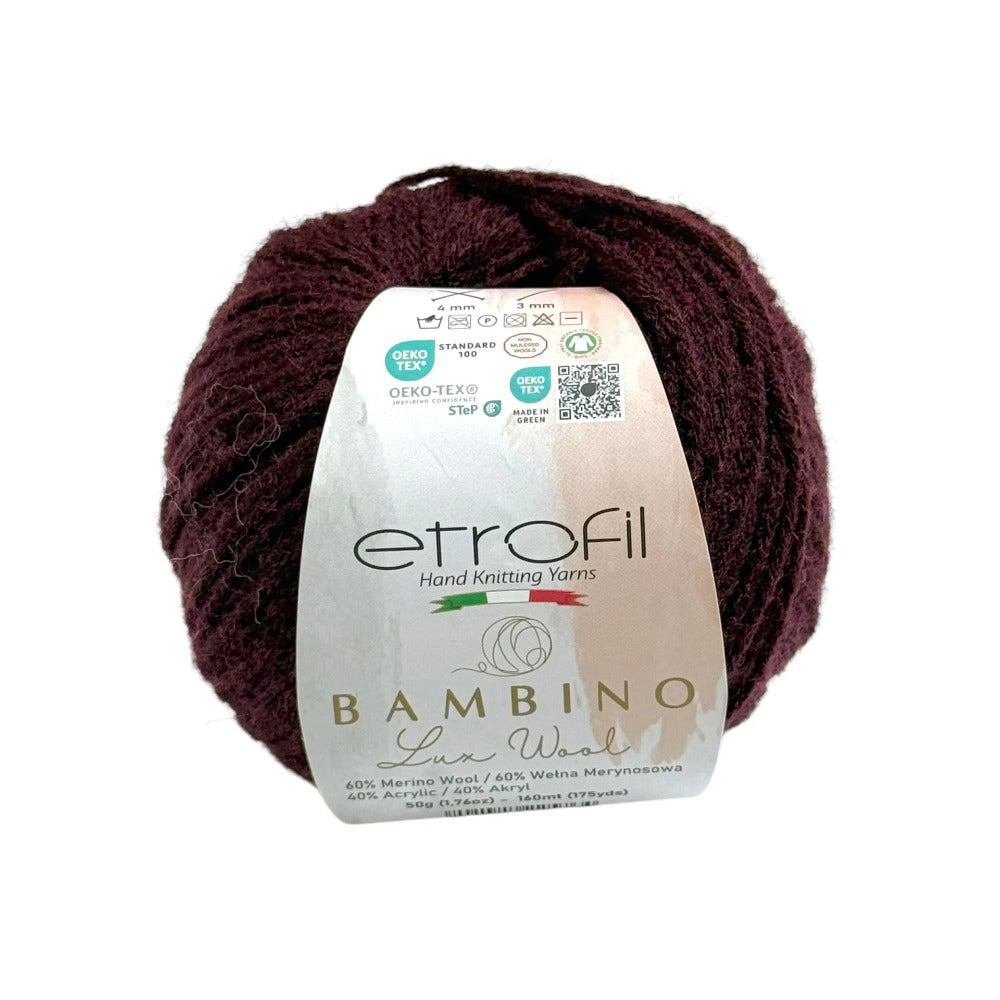 Etrofil Bambino Lux Wool est un fil raffiné, confectionné à partir de fibres de laine mérinos de première qualité, reconnues mondialement pour leur douceur, leur chaleur et leur confort exceptionnels. La laine mérinos soigneusement sélectionnée constitue le cœur de cette collection, offrant une texture lisse et douce au toucher.