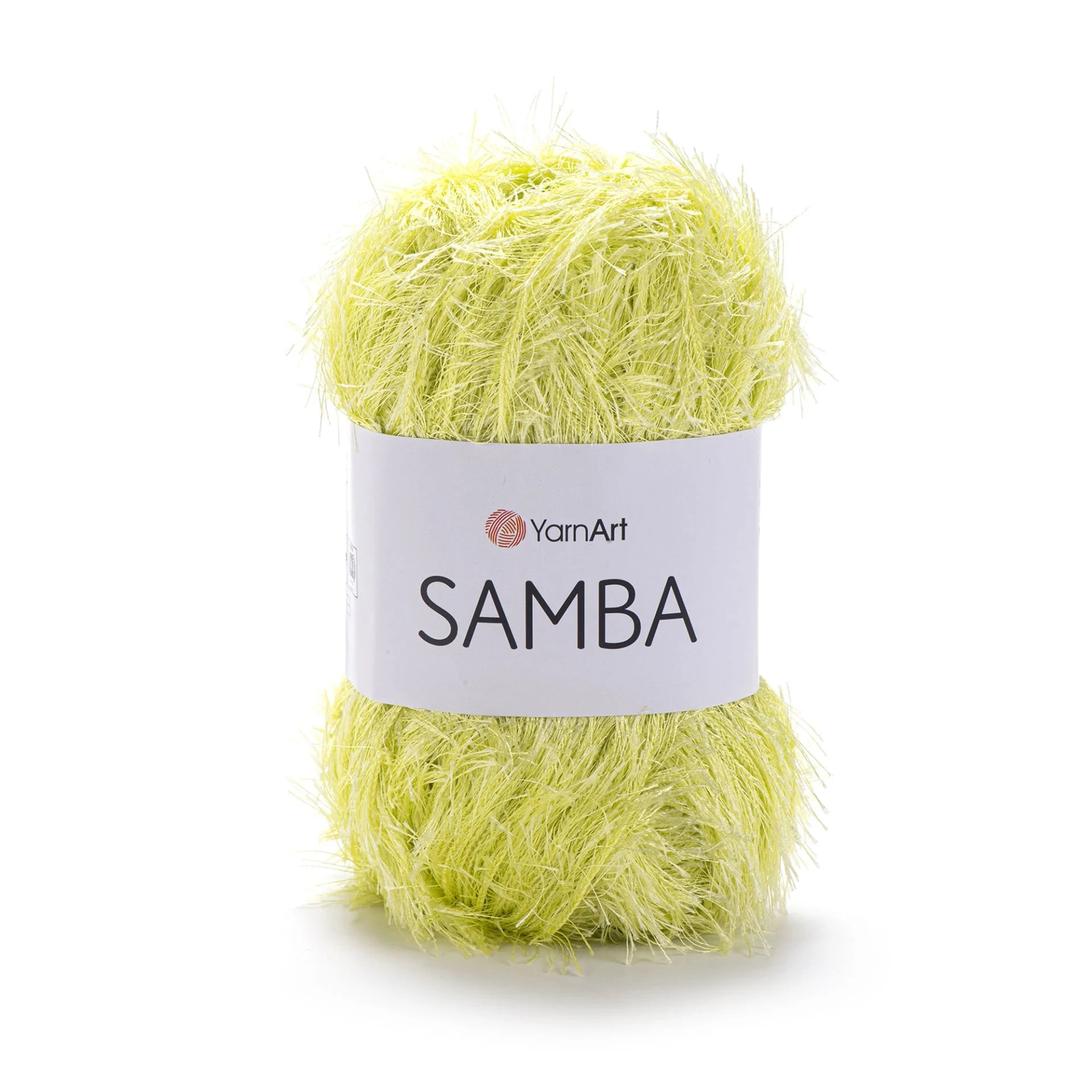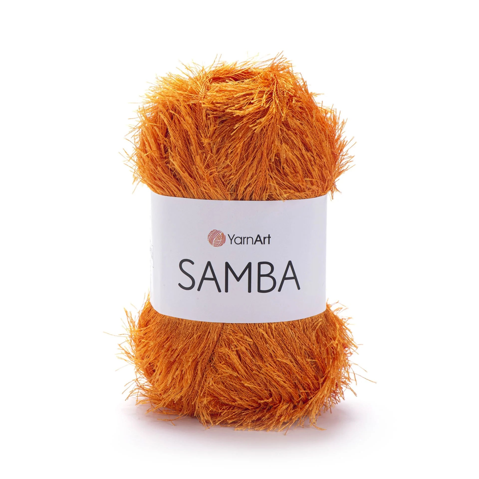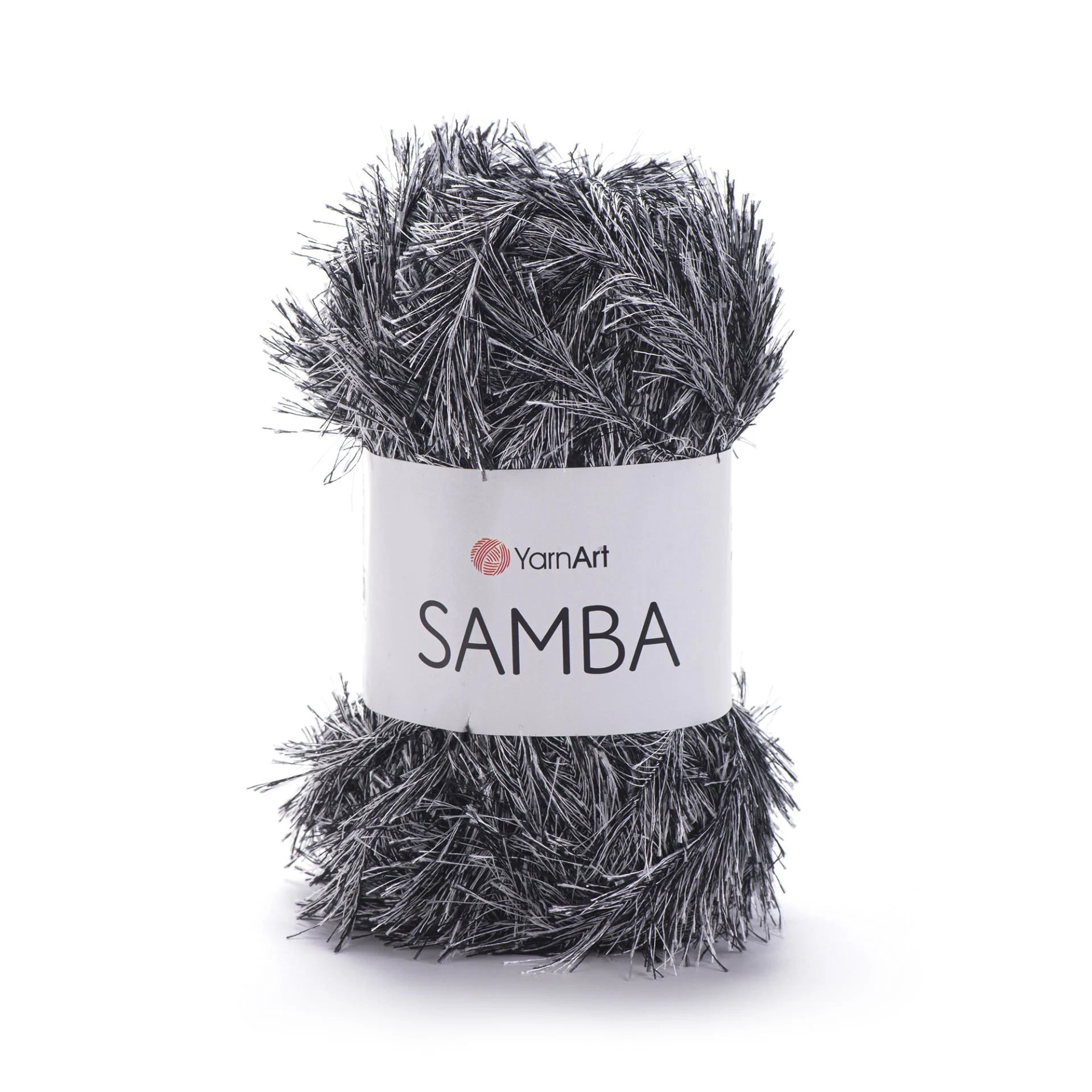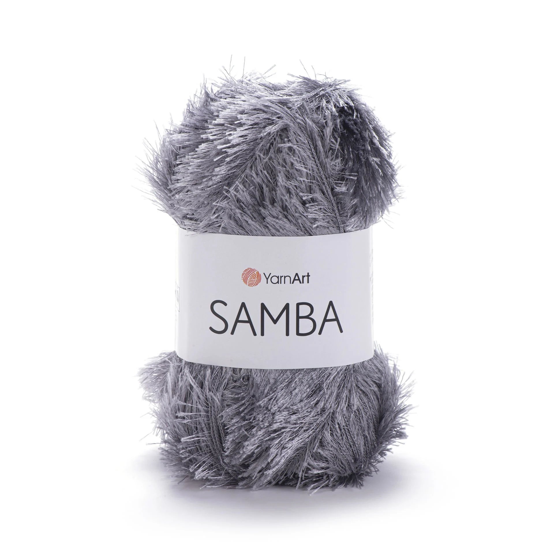 YarnArt Samba is a playful eyelash-style yarn made from 100% polyester. Its long, fluffy fibers create a faux fur texture, adding volume, softness, and eye-catching flair to every project. Easy to work with using 5.5 mm tools, it’s perfect for scarves, trims, hats, jackets, home décor accents, and amigurumi doll hair. Ideal for crafters who want quick, textured results with a fun, luxurious feel.