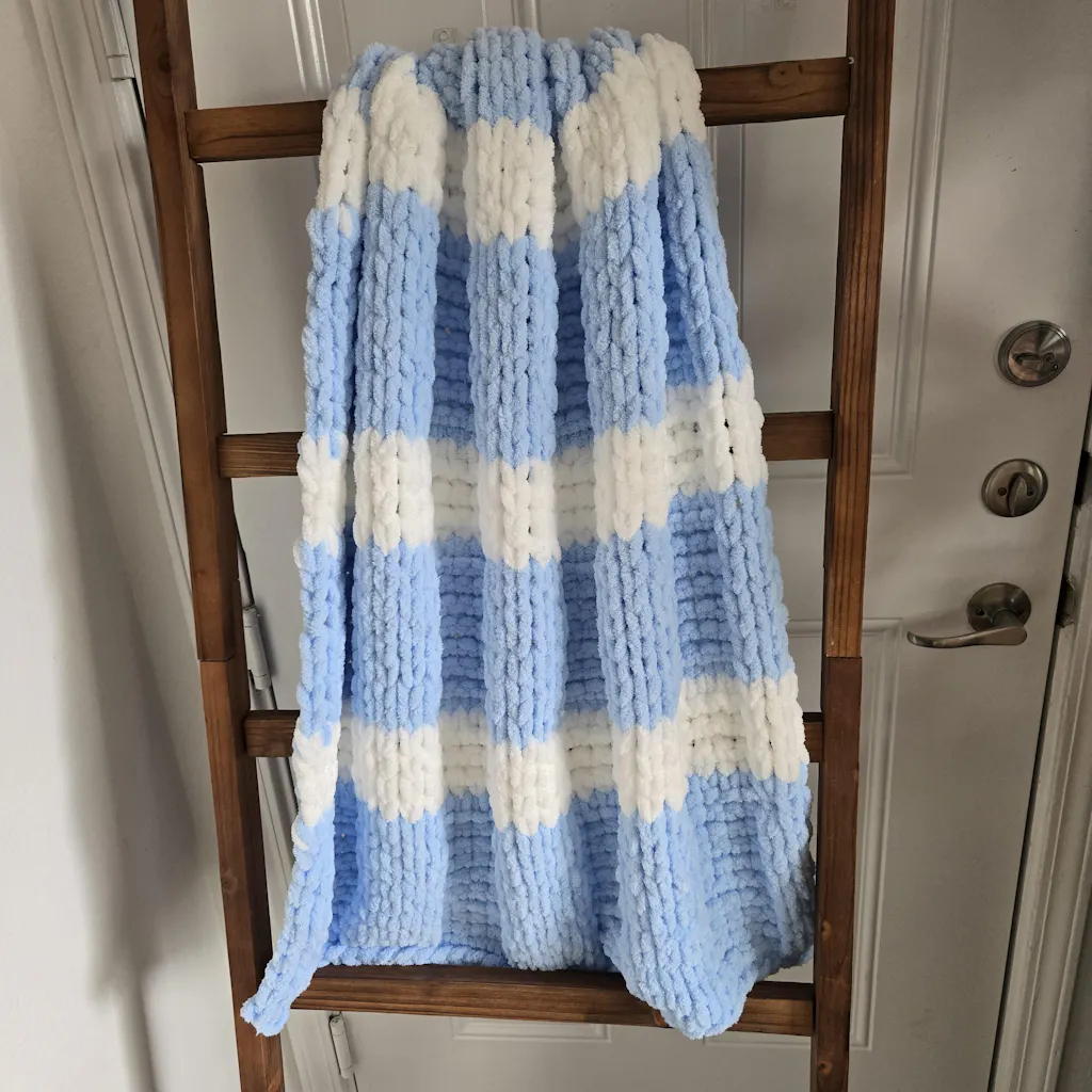 This is fabulous yarn! I have already made quite a few blankets with it! I bought "quite" a few colors and am loving the effect that this yarn has. It's lightweight, but the puffiness brings extra special detail to any stitch pattern I chose - regular, herringbone, criss-cross, etc. Really nice material for baby blankets as well as for any item you make for any age, really. Definately would purchase again!! Great price point as well!