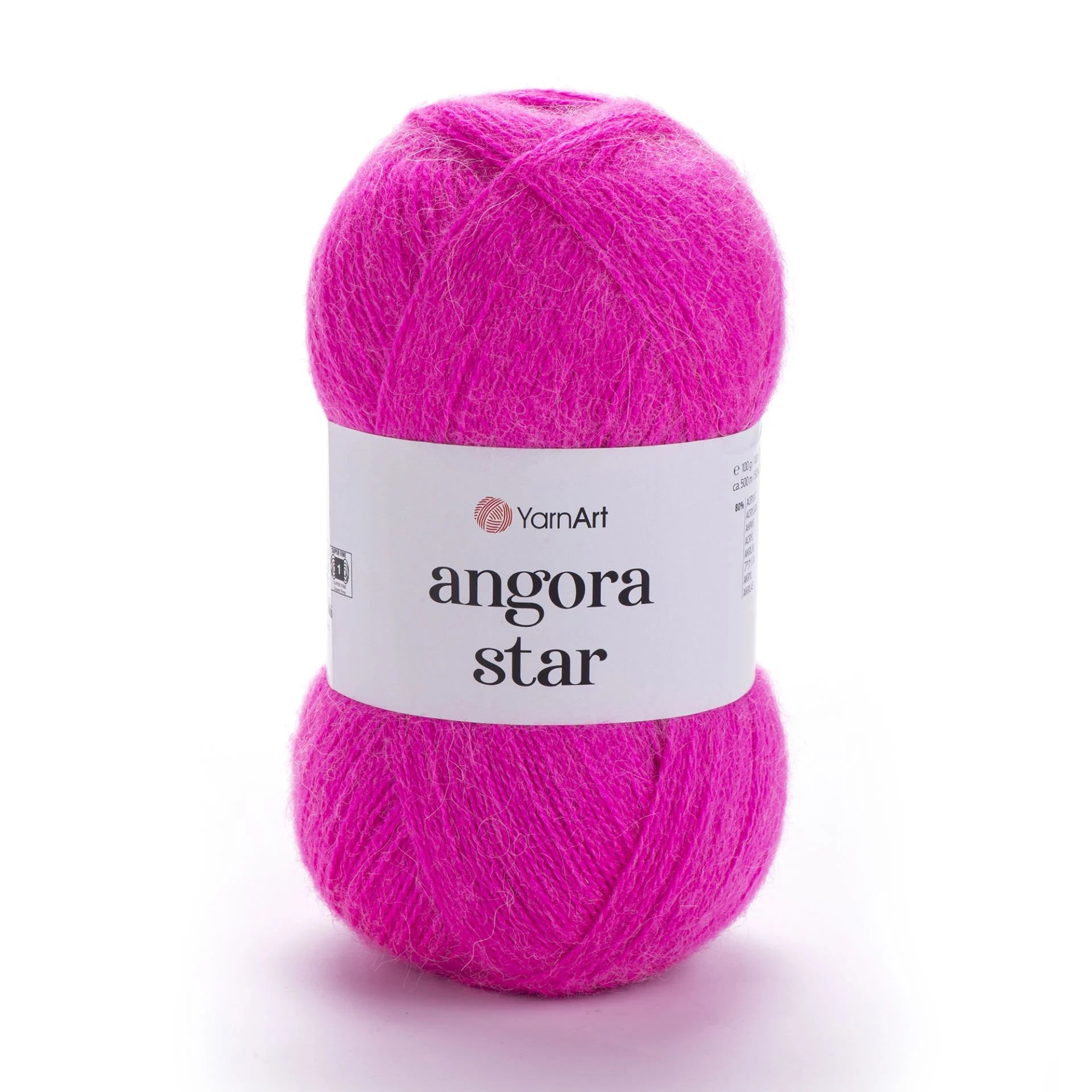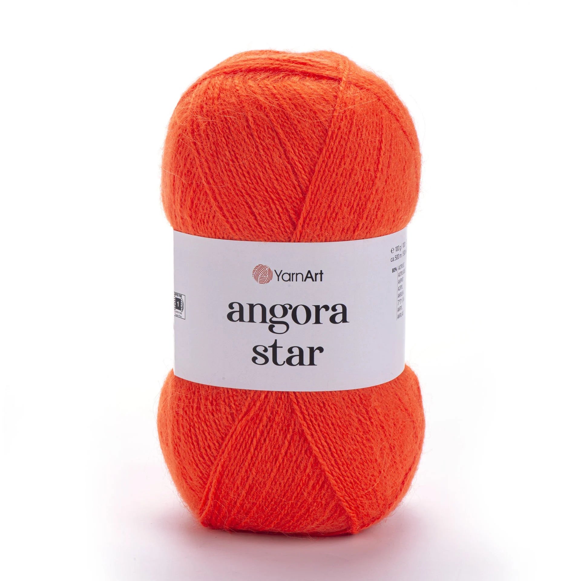 YarnArt Angora Star is an ultra-soft, fluffy yarn blending 80% acrylic with 20% fine wool. It offers lightweight halo texture and excellent drape, perfect for delicate shawls, lacy scarves, lightweight garments, and fine accessories