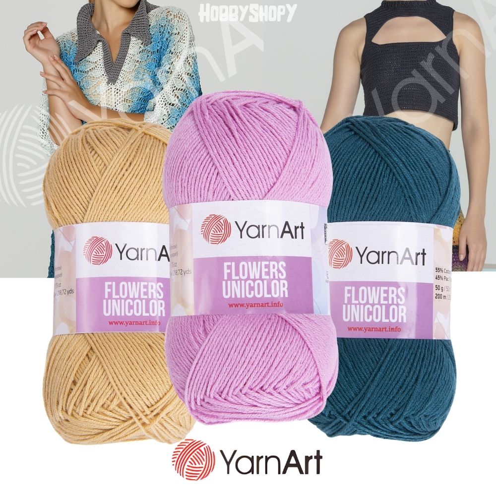 Yarnart Flowers Unicolor is a yarn with the same texture and thickness as Flowers. Flowers Unicolor's single color balls are designed to be used together with other products of the Flowers family. You can find colors suitable for all Flowers products among the wide range of options. The product, which is ideal for your summer knits, can also be used for baby clothes thanks to its cotton content.
