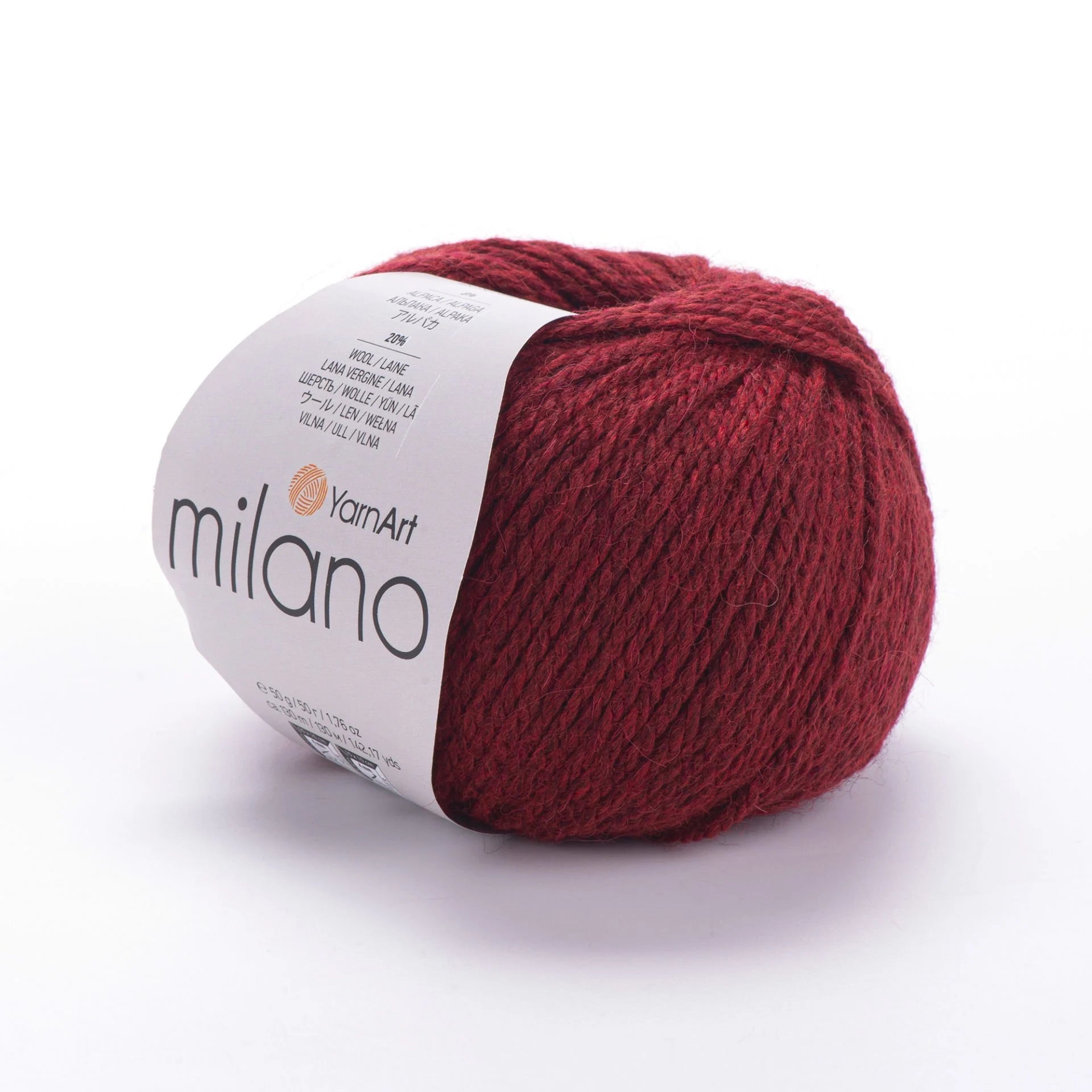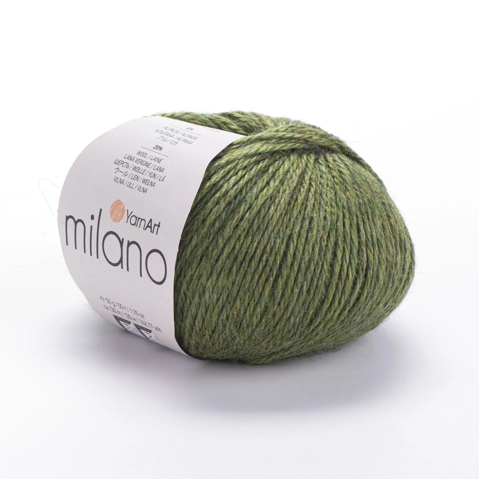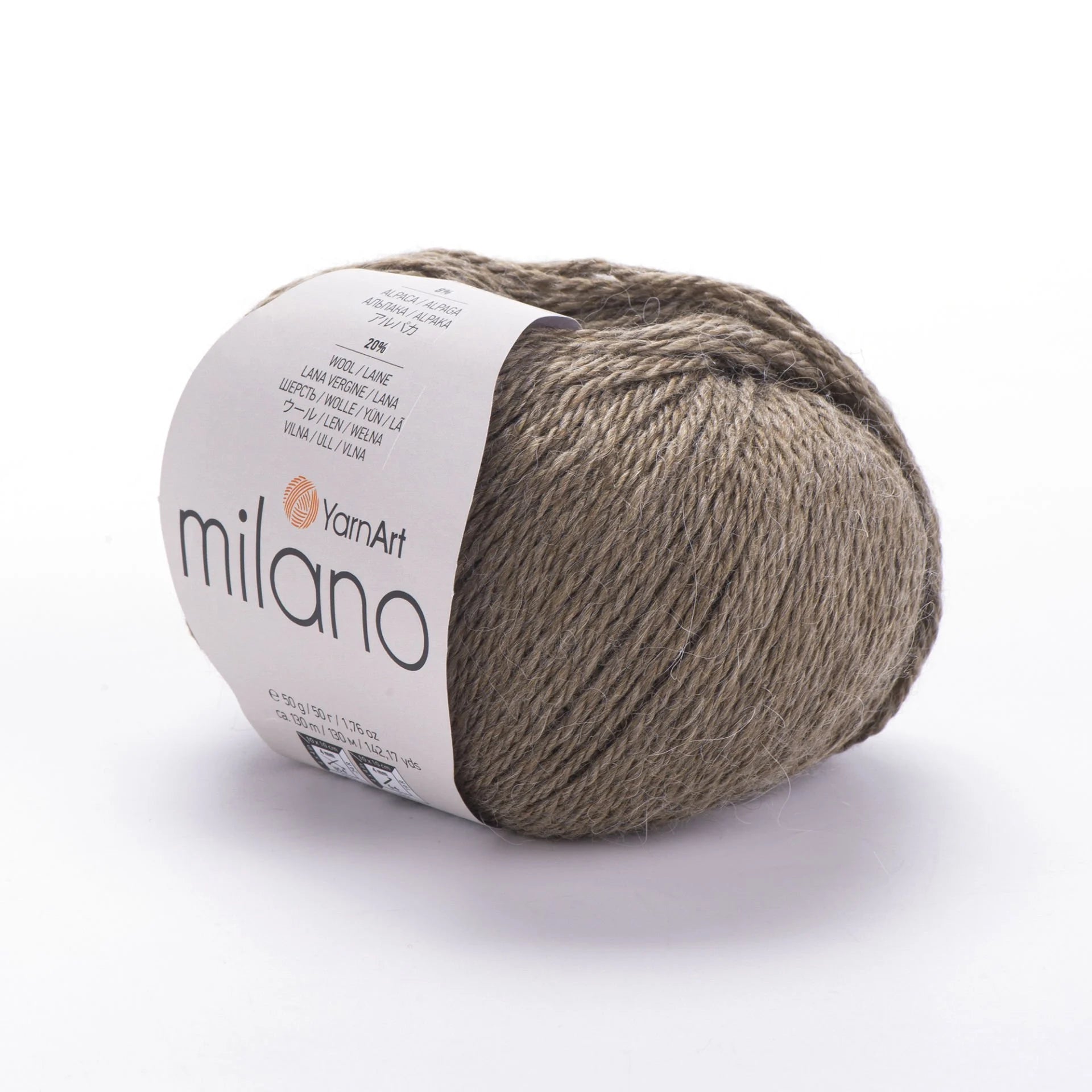 YarnArt Milano is a luxurious DK-weight yarn blending alpaca, wool, viscose, and acrylic. The mix provides warmth, softness, drape, and durability. With 130 m in each 50 g skein, it's excellent for creating soft, cozy apparel like shawls, cardigans, scarves, and winter hats with beautiful stitch definition and enhanced comfort.